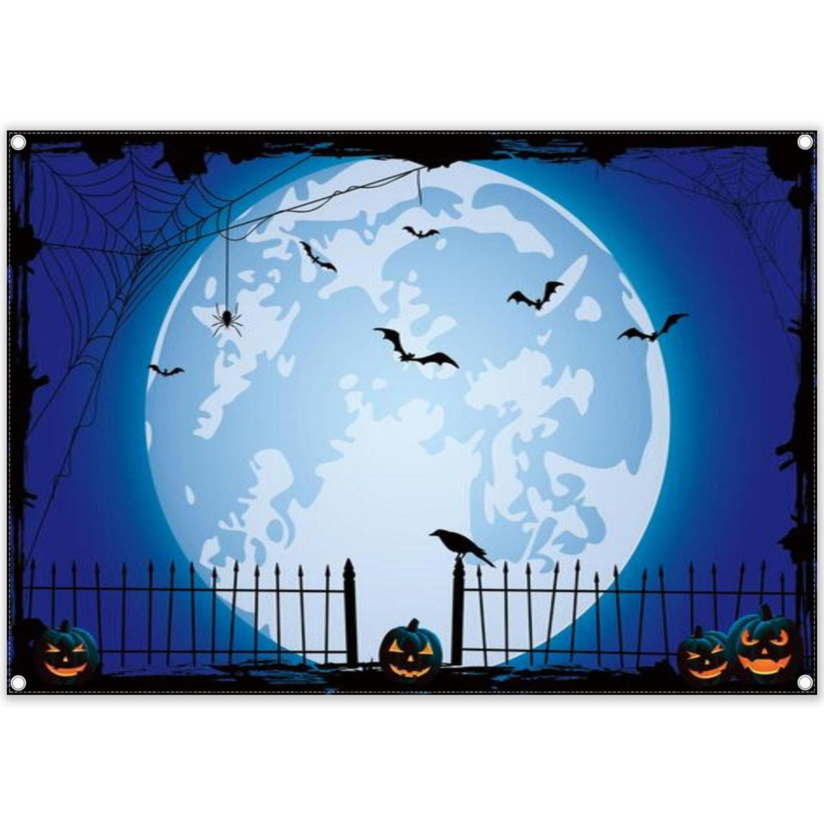 Swepuck 7X5Ft Blue Halloween Photo Backdrop For Parties Large Pumpkin Patch Moon Picture Photography Background Kids Witch Haunt