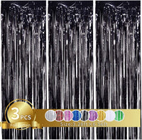 Toniful 3Pcs Black Door Streamers,3.28Ft X 6.56Ft Black Photo Booth Backdrop Metallic Streamers Black Foil Fringe Curtains For B