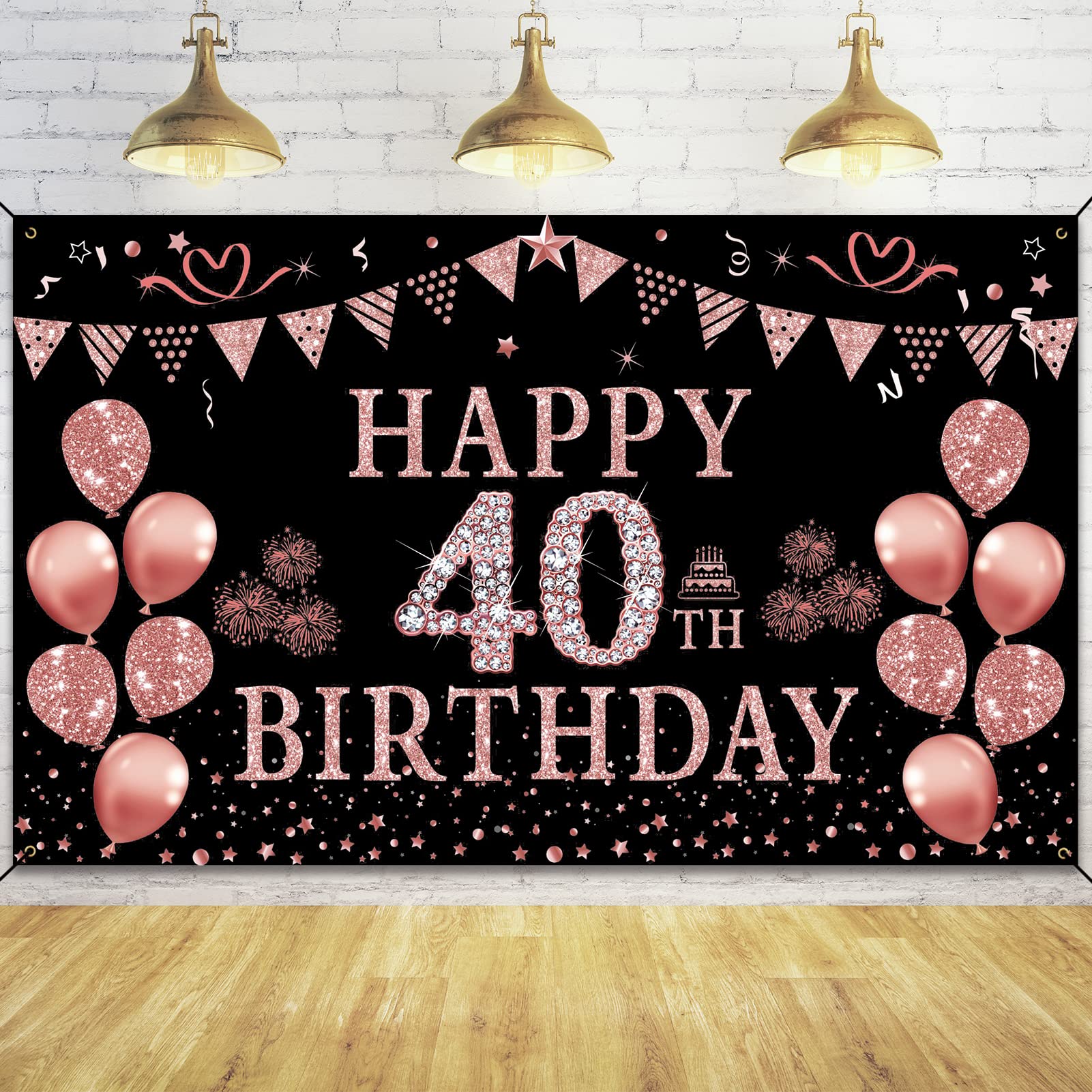 Trgowaul 40Th Birthday Decorations Banner For Women, Rose Gold 40 And Fabulous Decorations Backdrop Party Supplies, Photography