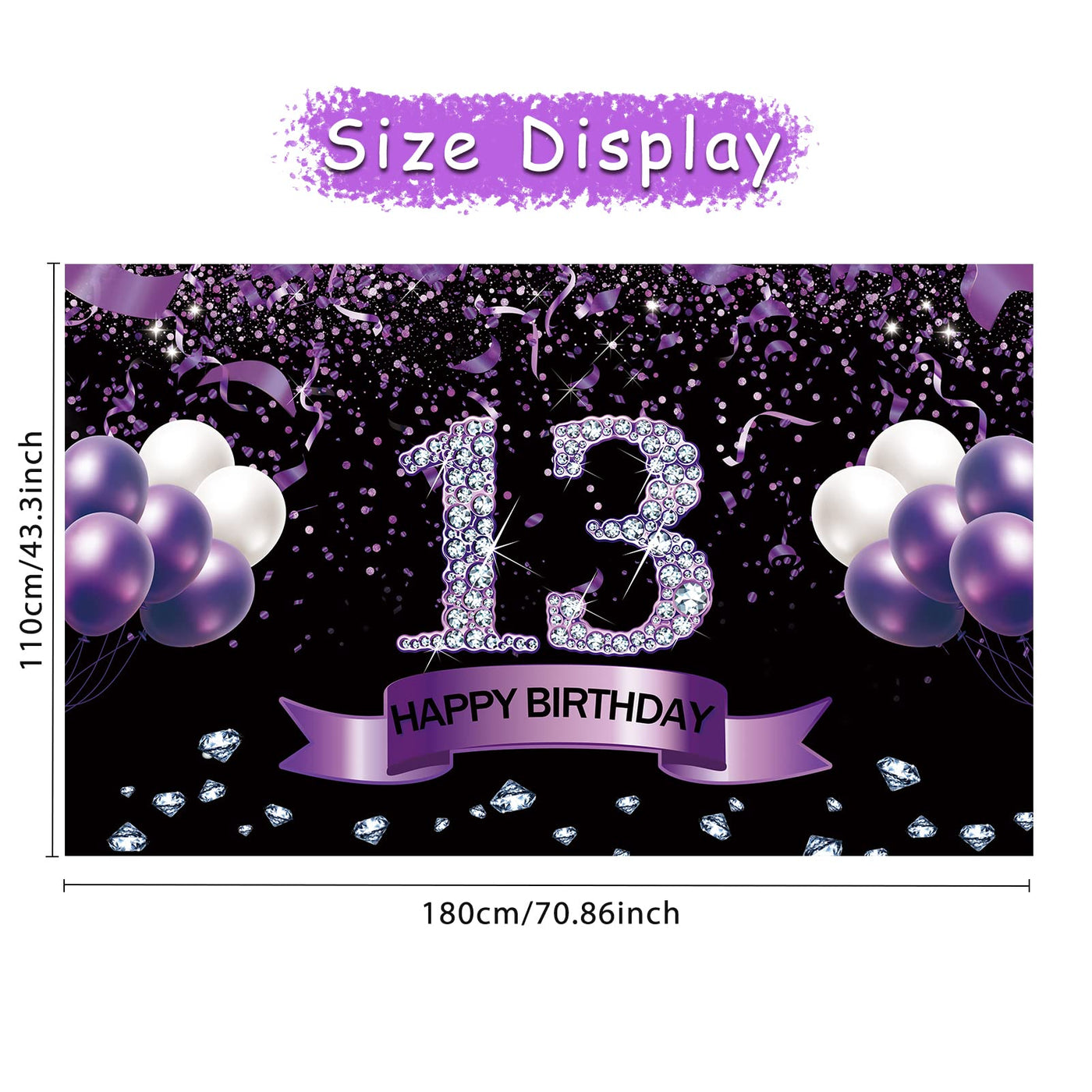 Trgowaul Happy 13Th Birthday Party Decorations For Girls. It Is Large Enough For Your Birthday Party. What Will You Get: 1 X Purple And Black Backdrop Banner 70.8 X 43.3 Inch. 1 X Rope. Attention Please: 1.Each Computer Color Correction Will Be Different, Subtle Color Difference Is Common.2.At The Same Time,Because Of Our Background Material Or Pattern Ink In Different Batches,The Background When Printed Will Have Very Small Difference.3.The Background Pattern Is Digitally Printed With High Quality.4.Folding Packaging: The Package Is Folded And May Have Creases. If You Care About Creases, Iron The Back With A Low Heat Steam Iron Or Roll It Up With A Long Tube For About 3-4 Days. Don'T Use A Dry Iron. How To Hang Up? Each Corner Of Our Birthday Backdrop Has A Hole. So You Can String The Hole With The Rope We Sent, And Then Hang Them Where You Want. Or You Can Use Clips, Tape Or Pushpins To Hang The Background On The Wall.