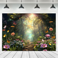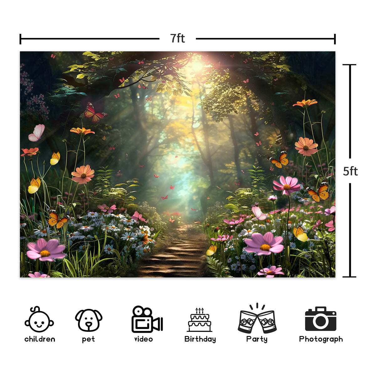 Ufeela Enchanted Fairy Garden Backdrop Woodland Wonderland Spring Daisy Flower Green Butterfly 7Wx5H Feet Fabric Polyester Birth