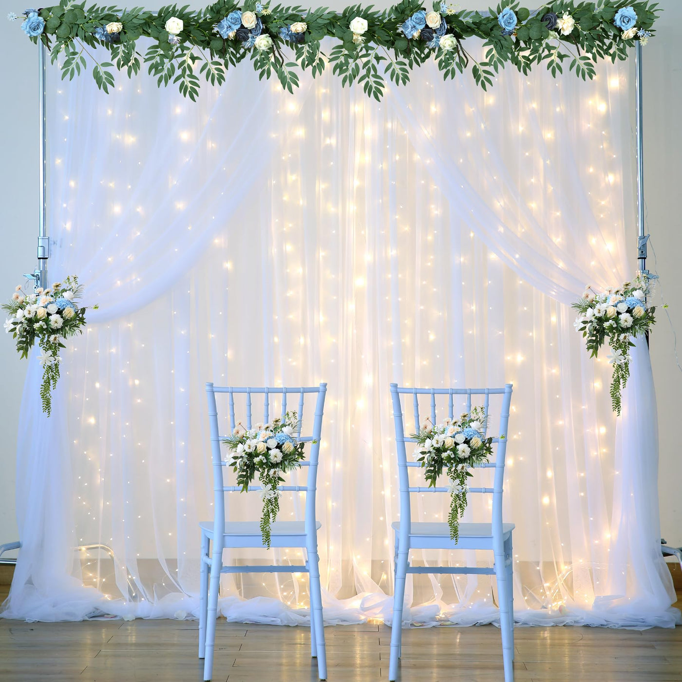 White Tulle Backdrop Curtain With Lights String For Parites 10 8Ft Sheer Backdrop Curtains White Curtain Backdrop For Wedding B