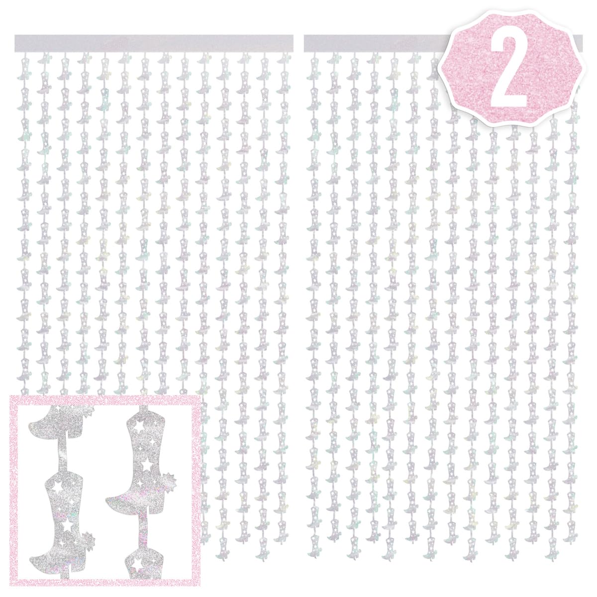Is It Bright In Here, Or Is That Just These Curtains?! These Mega-Shiny Iridescent Foil Cowgirl Boot Curtains Create A Super Fun Background For Your Next Event - Whether That Be A Bachelorette Party, Cowgirl Birthday Party, Or Even Just A Saturday Hang. Don'T Have A Photographer'S Eye?! Doesn'T Matter! You Don'T Need One With Our Go-To Photo-Op Foil Curtains! If You'Re Looking To Throw A Party Guests Won'T Forget, Look No Further! These Iridescent Foil Cowgirl Boot Curtains Promise To Create A Super Fun Atmosphere For The Whole Party! They Are Truly The Ultimate Party Decoration!