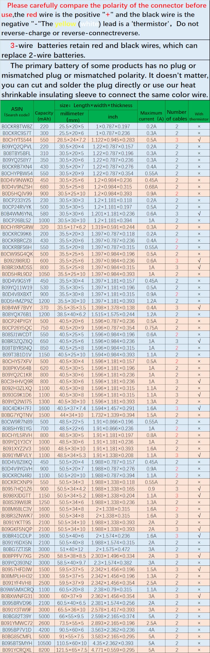 Package:803040 1100Mah Lipo Battery X 1,Heat Shrinkable Insulating Sleeve X 1 Compatible : Sena 10C,Sena 10C Pro Motorcycle Bluetooth Camera Bluetooth Headset?It Can Also Be Used In Other 3.7-5V Electronic Products With Power Less Than 4.07Wh (1100Mah).It Can Also Be Used For Mp3, Mp4, Mp5, Gps, Watch, Power Packs, Detectors, Recorders, Bluetooth Mice, Gaming Headset, Speakers, E-Books, Led Lights, Sensor Lights, Parking Monitor,Car Driving Recorder, Portable Dvd, Radios, Toys,Network Box,Usb Fan,Tester,Air Purifier,Controller,Bluetooth Speaker, Dash Cam, Keyboard And Mouse, Wi-Fi Enabled Smart Home Systems, Pda And Digital Cameras, Monitoring Units, Notebook Computers, E-Books,Telematics,Tracking Devices, Sleep Management Equipment, Blood Oxygen More. Other 3.7~5V Electronic Products With Power Less Than 4.07Wh (1100Mah).Size:1.594 X 1.181 X 0.315 Inch(L*W*T)Size:40 30 8Mm(L*W*T)Capacity:1100Mahweight:0.74Oz(21G)Maximum Current:1.1A