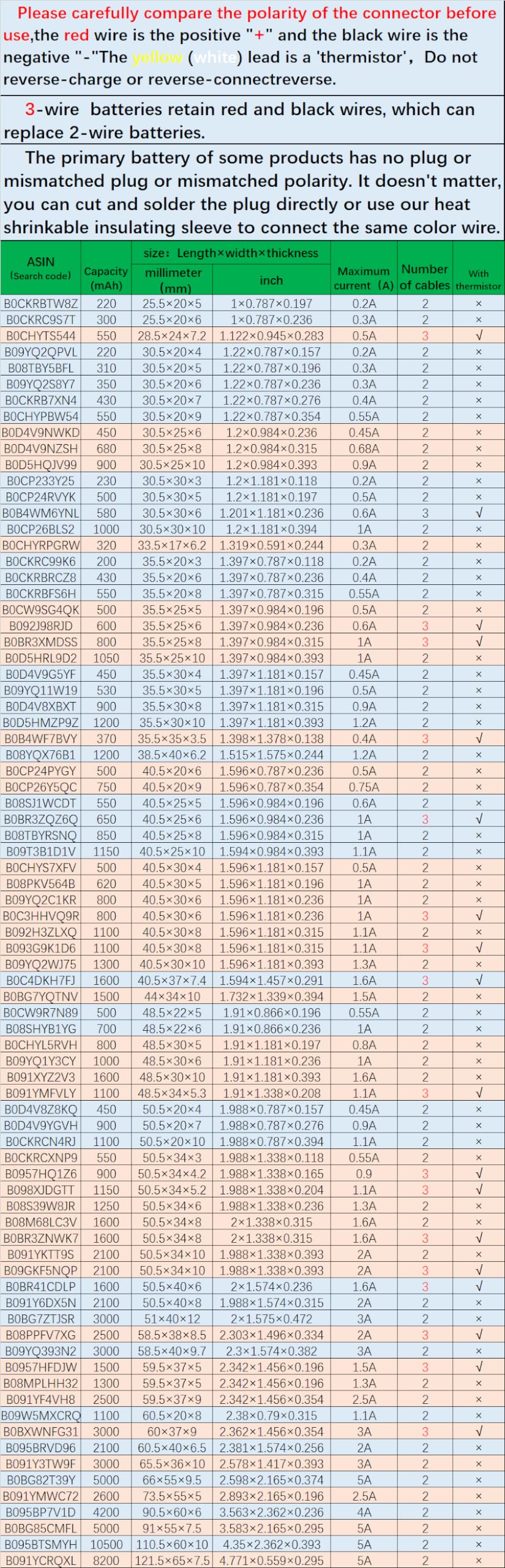 Q: How do I ensure proper installation of the HXJNLDC battery?A: To ensure proper installation, carefully compare the polarity of the connector before use. The red wire is the positive '+' and the black wire is the negative '-'. If the primary battery of your device has no plug or mismatched polarity, you can cut and solder the plug directly or use the provided heat shrinkable insulating sleeve to connect the wires.