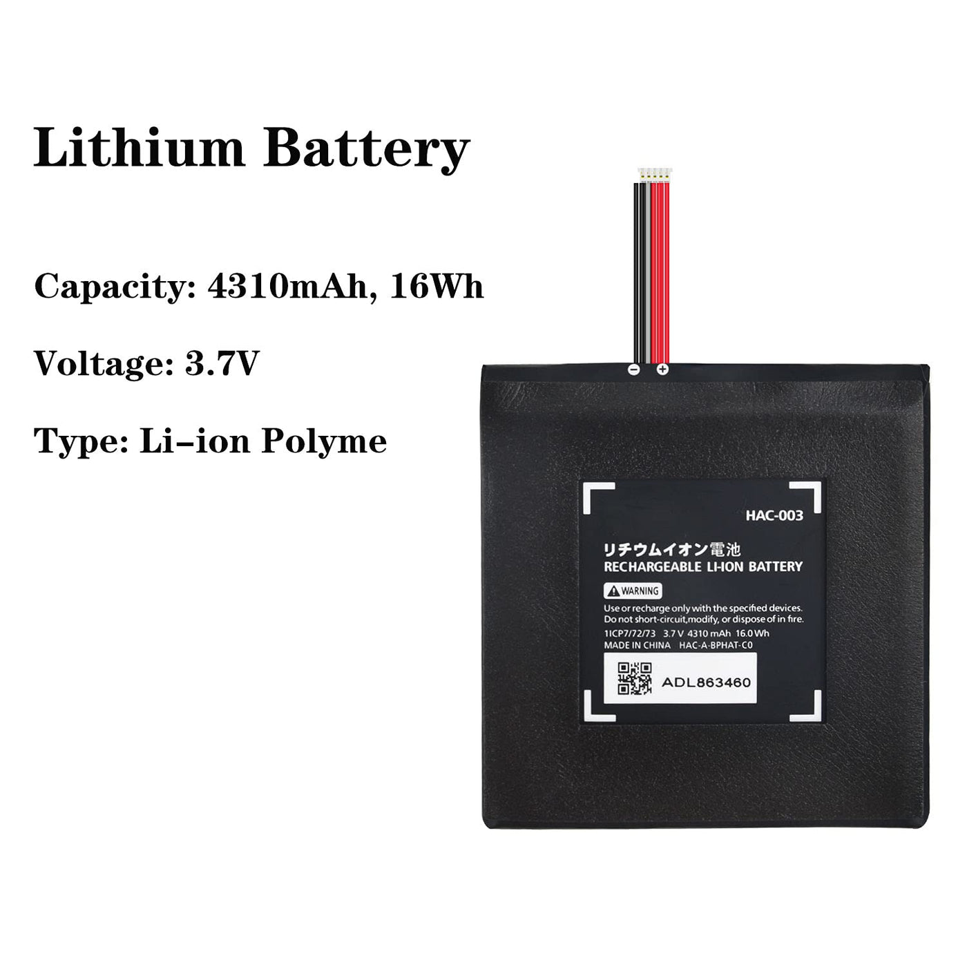 Jaoystii Hac-003 Battery For Nintendo Switch Console Specification: Capacity: 4310Mah, 16Wh Voltage: 3.7V Type: Li-Ion Polymer Compatibility: Compatible Model: Nintendo Switch Game Console 2017 Hac-001.Satisfaction Guarantee: If You Have Any Question About The Analog Joystick Replacement, Please Feel Free To Contact Us. We Will Repley You Within 24 Hours.