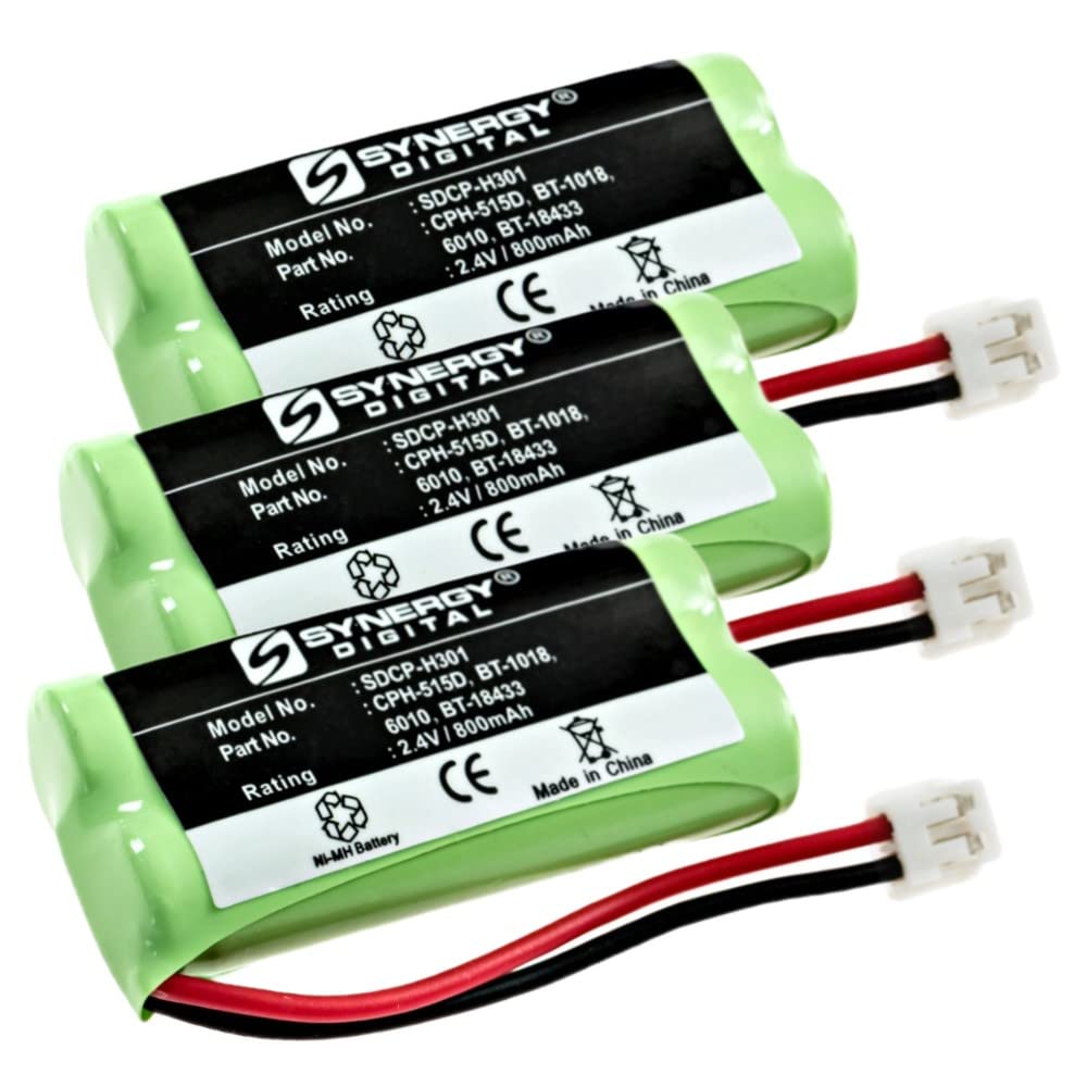 - Q: What are the specifications of the Synergy Digital Cordless Phone Batteries? A: These batteries feature Ni-MH chemistry, a voltage of 2.4V, and a capacity of 800 mAh. They are designed to provide reliable power for your cordless phone, ensuring optimal performance.