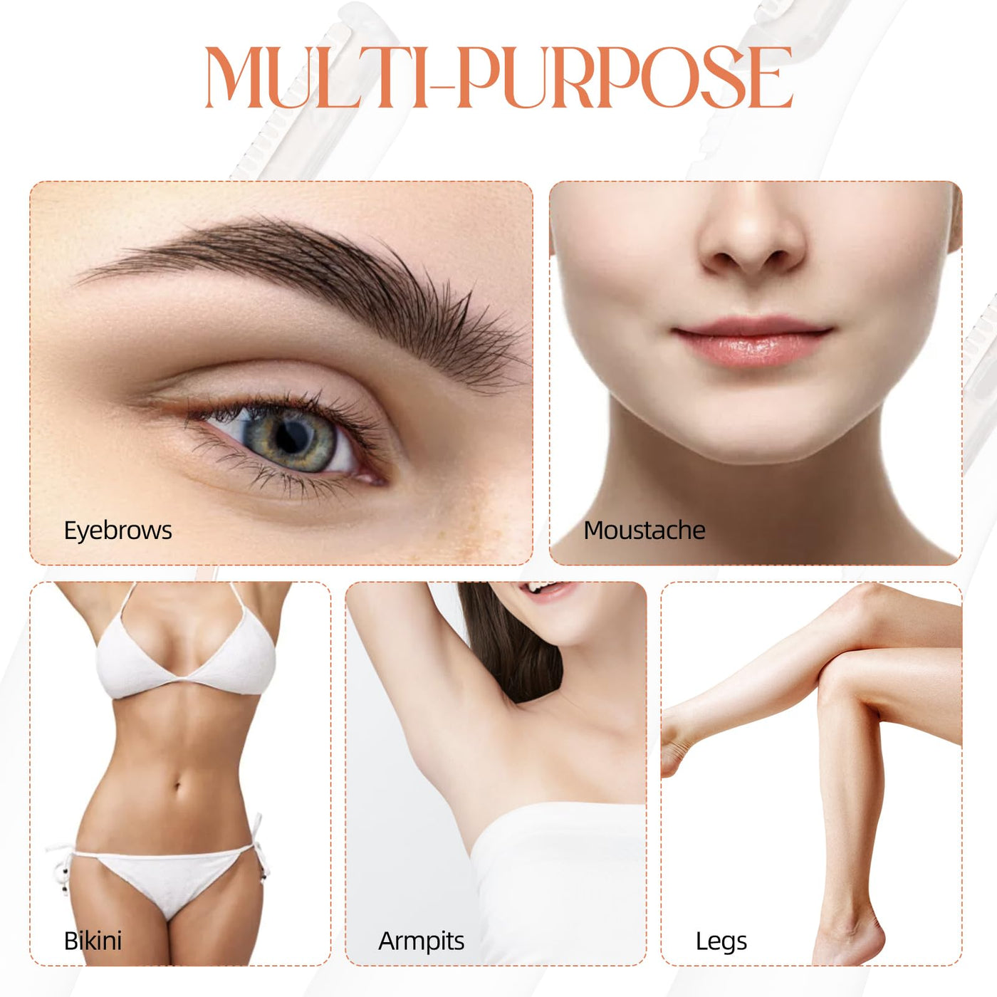 Q: What areas of the body can I use these replacement heads on?A: These versatile replacement heads are suitable for grooming various areas, including eyebrows, moustache, armpits, legs, and even the bikini line.