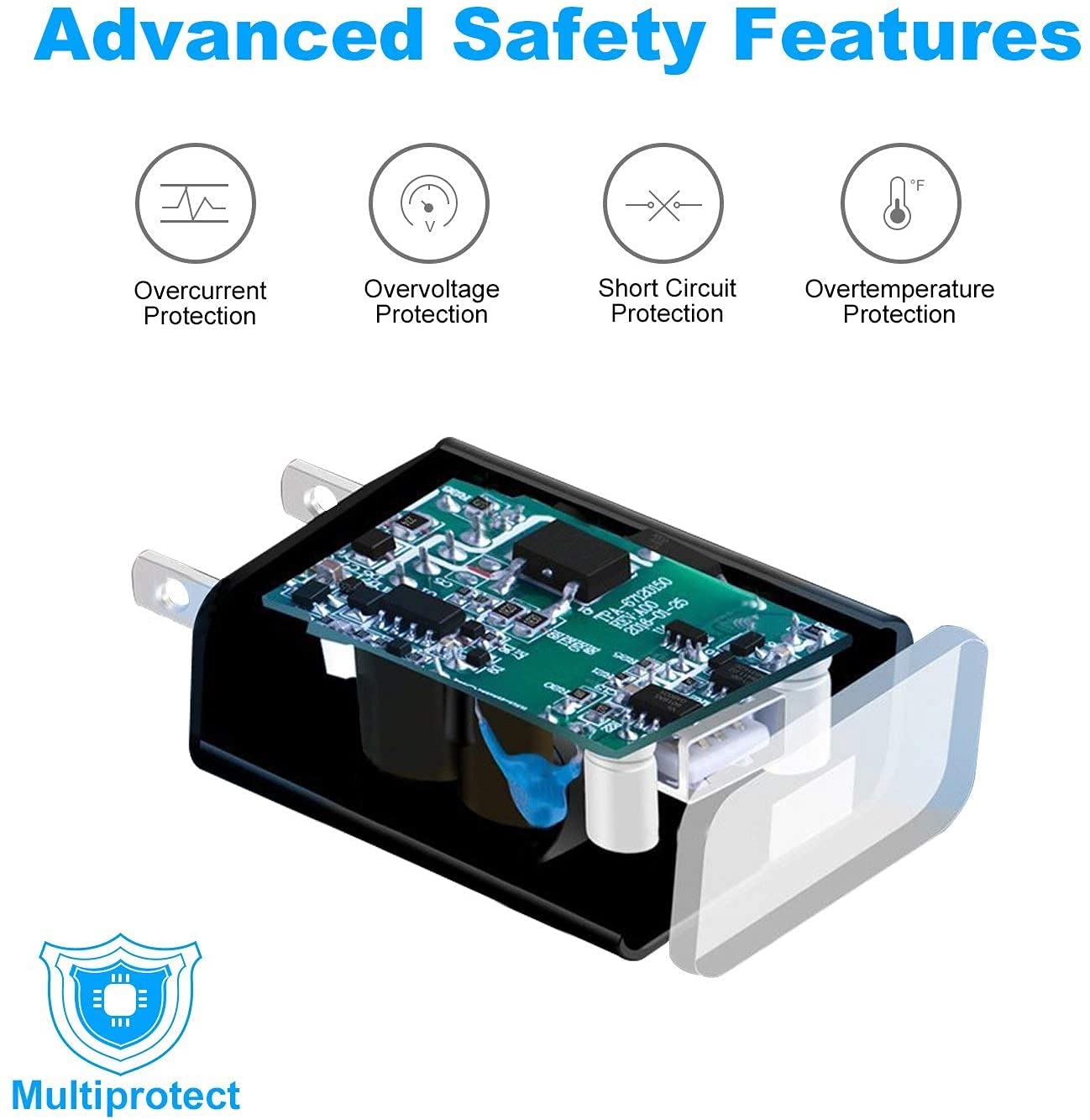 Q: What safety features does the charger include?A: The 18W Quick Charge 3.0 charger includes multiple safety features such as over-current protection, over-charging protection, and short-circuit protection, ensuring safe charging without the risk of overheating or damaging your devices.