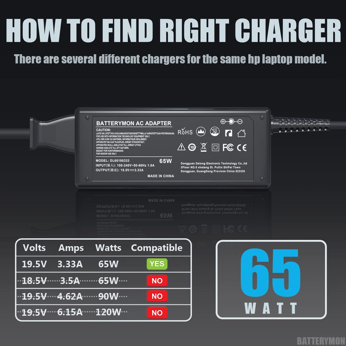 19.5V 3.33A 65W Ac Adapter Laptop Charger For Hp Pavilion Touchsmart 14 B109Wm 14 B120Dx 14 173Cl 15 B129Wm 15 B142Dx 15 B143Cl 15 B152Nr 14 B 15 B Sleekbook 693715 001 677770 001 613149 001