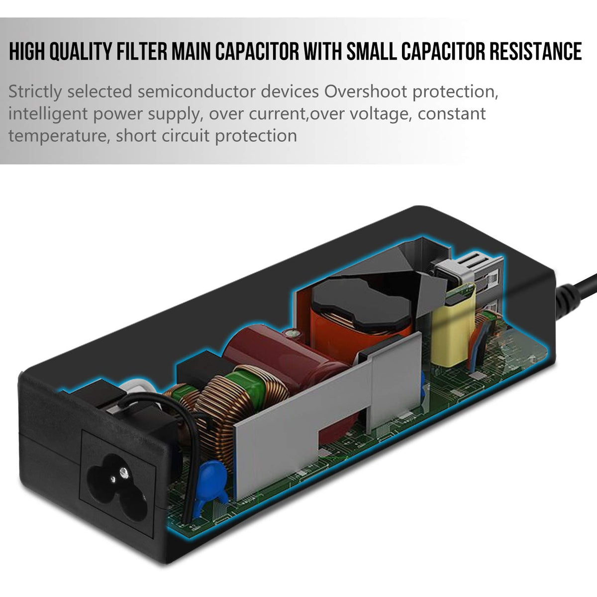 Q: Does this charger have safety features?A: Yes, the charger is CE/FCC/RoHS certified and includes multiple safety features such as overload, overheat, overcurrent, overvoltage, short circuit, and overcharge protection to ensure the safety of your laptop.