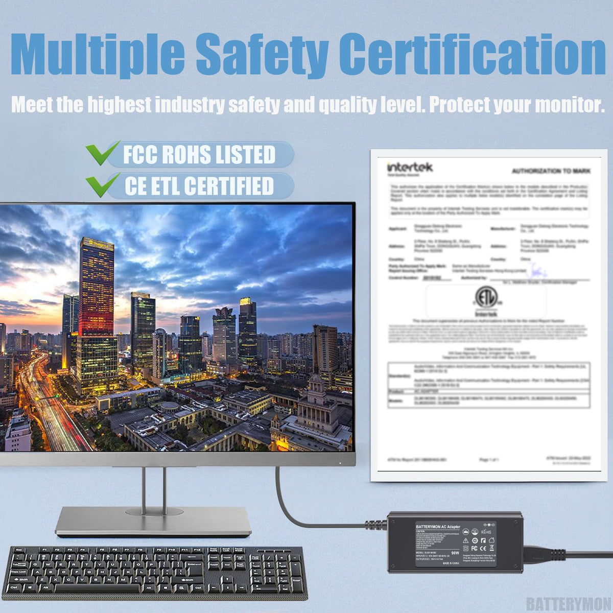 19V Monitor Power Adapter Cord For Asus Vg278Q Vg278 Vg279 Vg279Q Vg245H Vg245 Vg248Qe Vx248 Vx248H Vx228 Vx228H Vx279H Mx239H Mx279H Ls246H Lcd, Asus 27'' 24'' 23'' 22'' Gaming Monitor Charger