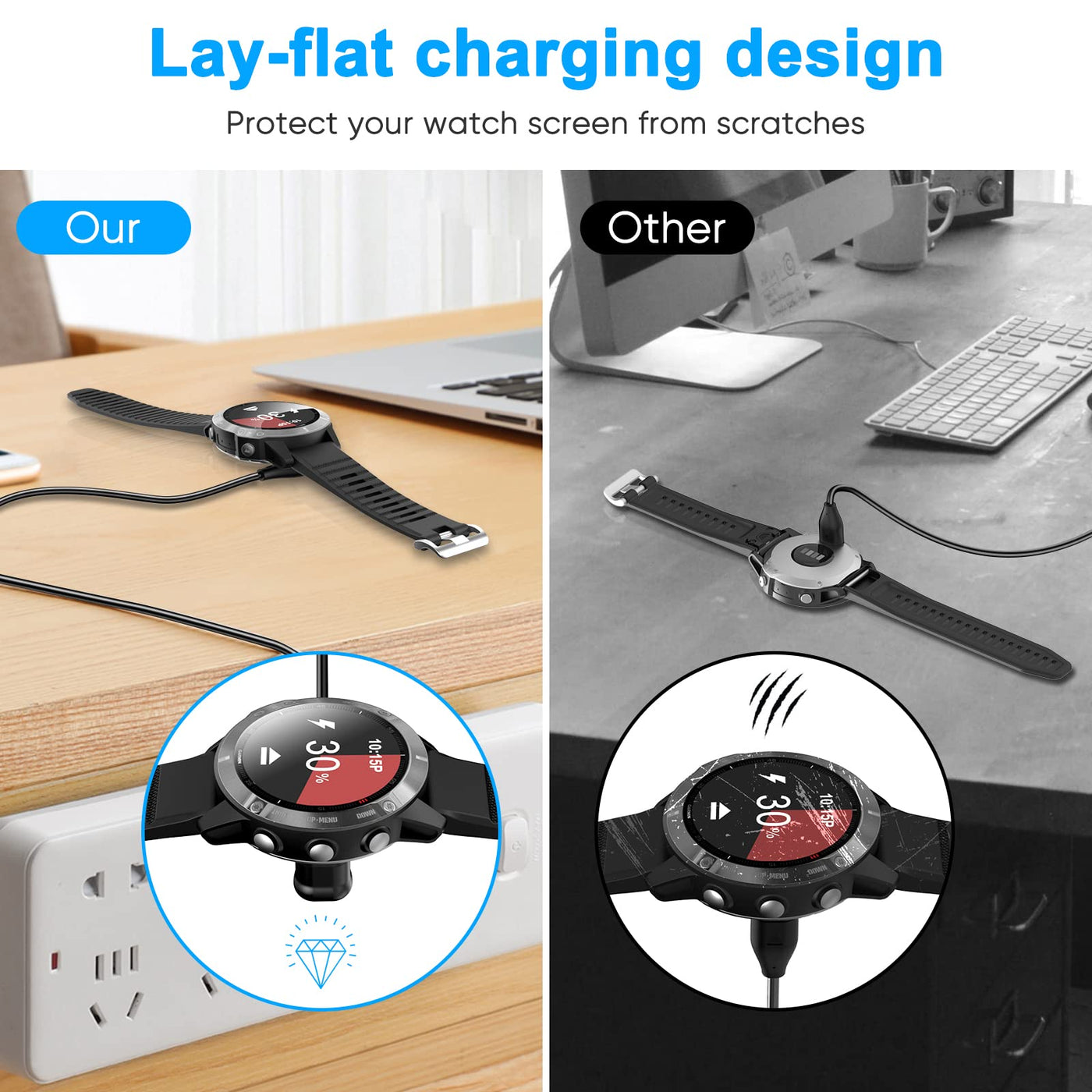- Q: What makes this charging cable different from others on the market? A: This upgraded charging cable features an L-shaped charging head design that allows for more stable and convenient horizontal charging, better protecting your Garmin watch screen compared to standard straight connectors.