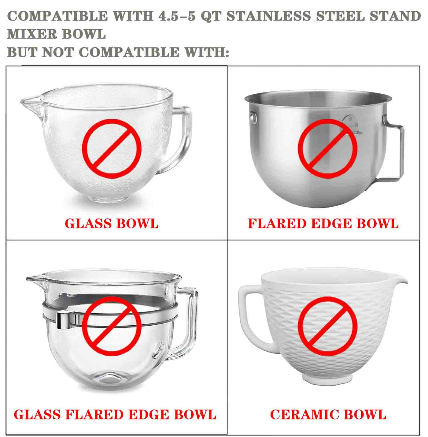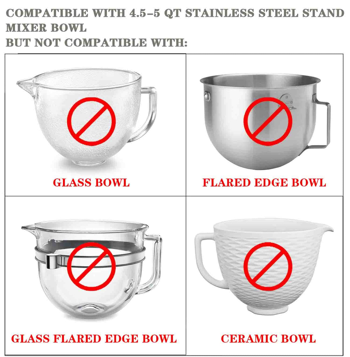 If Your Use Flour/Powdered Sugar And Hate The Mess / Powder Cloud Please Choose This Mixer Lids: 1. These Mixer Bowl Covers Are Suitable For Kitchenaid 4.5/5 Quart Tilt-Head Stand Mixers Bowl 2. These Lids Sooner To Help Contain The Extra Mess From Working With Powdered Sugar Or Batter 3. To Keeping Your Mixer Bowl And Beaters Dustfree, And To Keep Batter Covered Between Batches 4. The Mixer Cover Middle Is Removable So You Can Use It To Seal Bowl And Pop It In The Fridge Or Overnight 5. It Is No Longer Necessary To Cover The Bowl With A Folded Towel, Just Use This Lid Compatibility: Fits Models K45, K45Ss, Ksm1, Ksm75, Ksm8, Ksm90, Ksm9, Ksm95, Ksm100, Ksm103, Ksm105Gbcer, Ksm110Ksm120, Ksm15, Ksm150, Ksm155Gb, Ksm152, Kn15E1X, Ksm16, Ksm75Sl Classic Plus, Ksm45 And So On Not Fits Models: 5 Quart Bowl-Lift Mixer/Pro 500 /Professional Plus 5 / 6 Quart Size Not Suitable For Glass Bowls/Ceramic Bowls And Flared Edge Bowlspackage: 2 Pack Bowl Covers Lid For Tilt-Head Stand Mixers. (Mixer And Bowl Are Not Included)