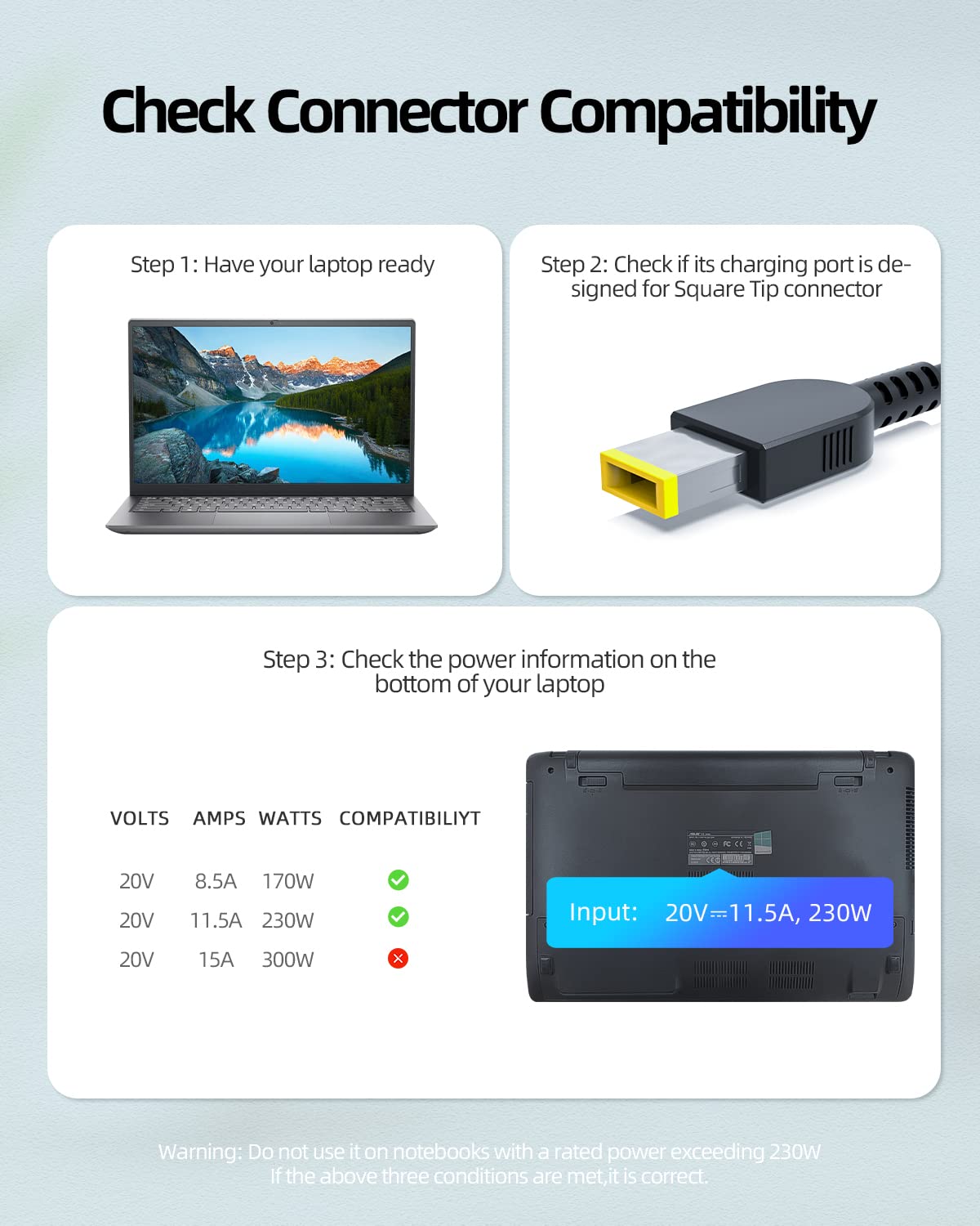 230W Ac Adapter Charger Replacement For Lenovo Legion Thinkpad Laptop, (Safety Certified By Ul), Slim Tip