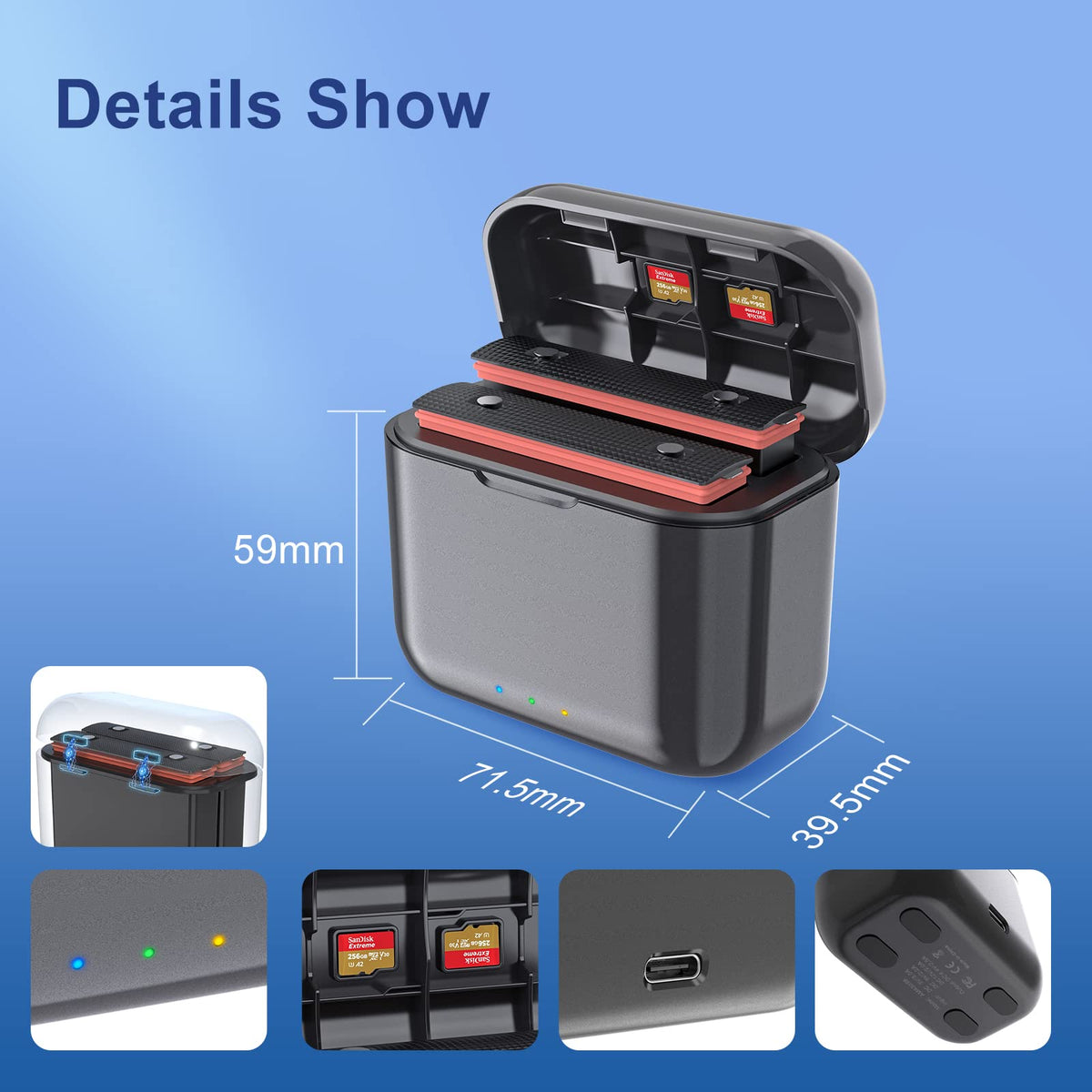 The Insta360 X3 Charger Box Is Designed With A Magnetic Flip Cover, And The Cover Is Firmly Connected With The Box, So That The Batteries Will Not Be Damaged Due To Exposure To The Outside. Moreover, The Charger Has Comprehensive Protection Functions Such As Overcharge, Short Circuit, Over Heating, Over Current, And Over Voltage, So It Is Safe To Use Without Fear Of Hidden Dangers. This Charging Hub For Insta360 X3 Is Embedded With The Mcu Intelligent Management System. It Can Identify High And Low Power Batteries, Deploy The Maximum Power, And First Charge The High Power Batteries.When The Battery Is Low, The Intelligent Fast Charging Mode Will Be Activated For High-Speed Charging; When The Battery Is Charged To 80%, The Smart Trickle Charging Mode Will Be Activated Until The Battery Is Fully Charged.