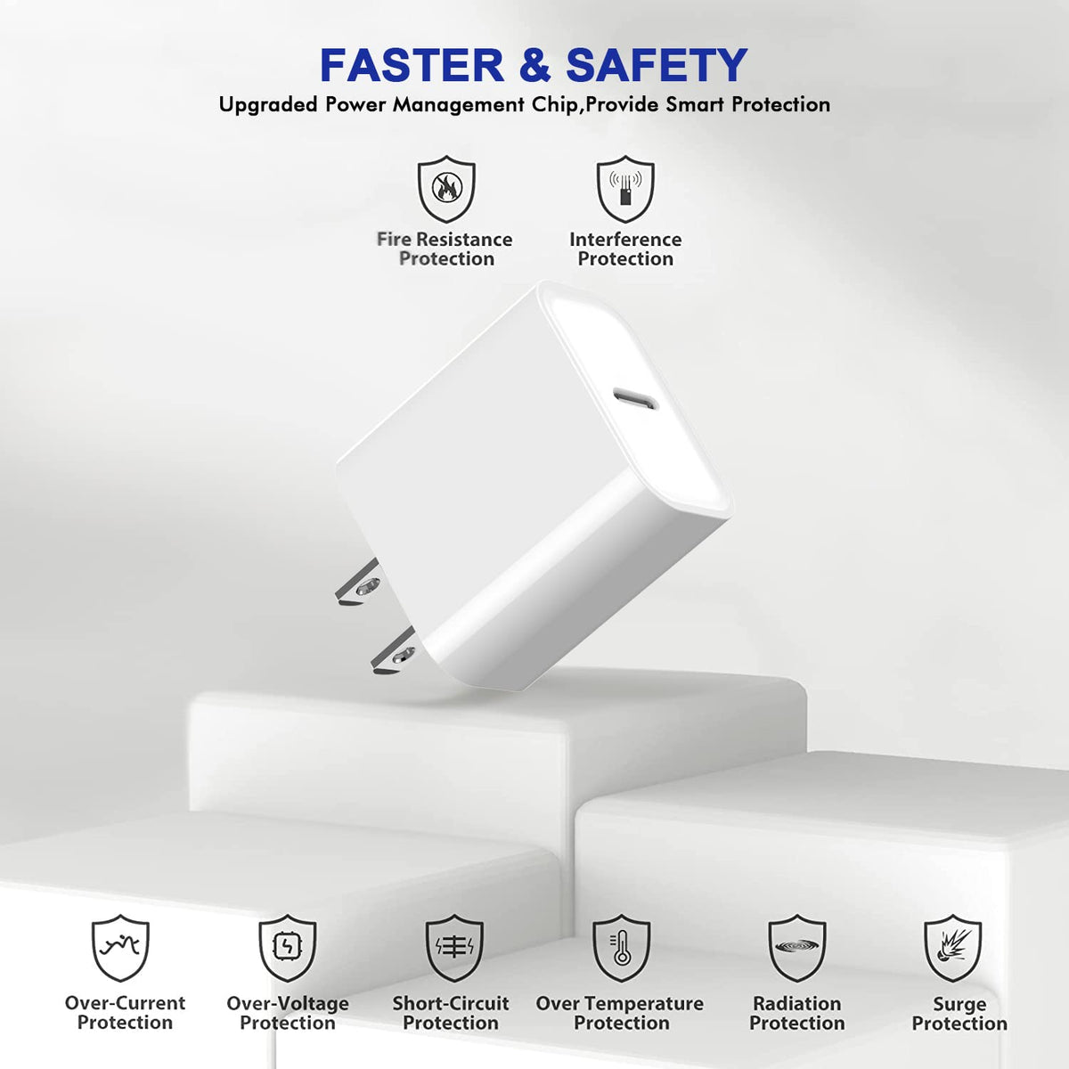 Q: Is the charger safe to use with my devices?A: Yes, the 20W PD USB-C charger is UL certified and features multiple safety protections, including over-voltage, over-current, and short-circuit protection, ensuring safe and reliable charging for your devices.
