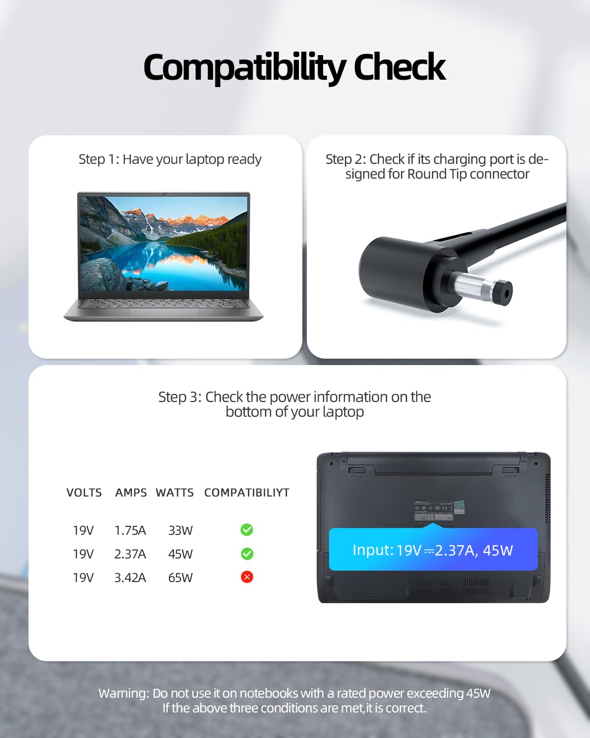45W Ac Charger Fit For Asus F515Ja F515J F515 M515 M415 M515U M515D M415D M415Da M515Ua M515Da M515Ua Es56 M515Da Ej221T M515Da Br294T M415Da Ek274 F515Ja Ah31 Laptop Power Supply Adapter Cord