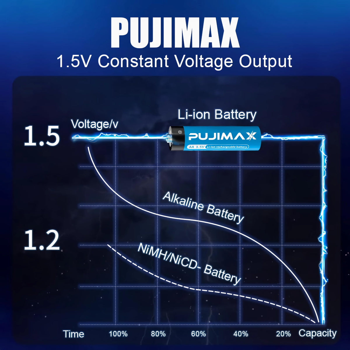 Pujimax 4225Mwh 4 Packs Lithium R 1.5V Rechargeable Lithium Batterieswith Charger Of Led Display