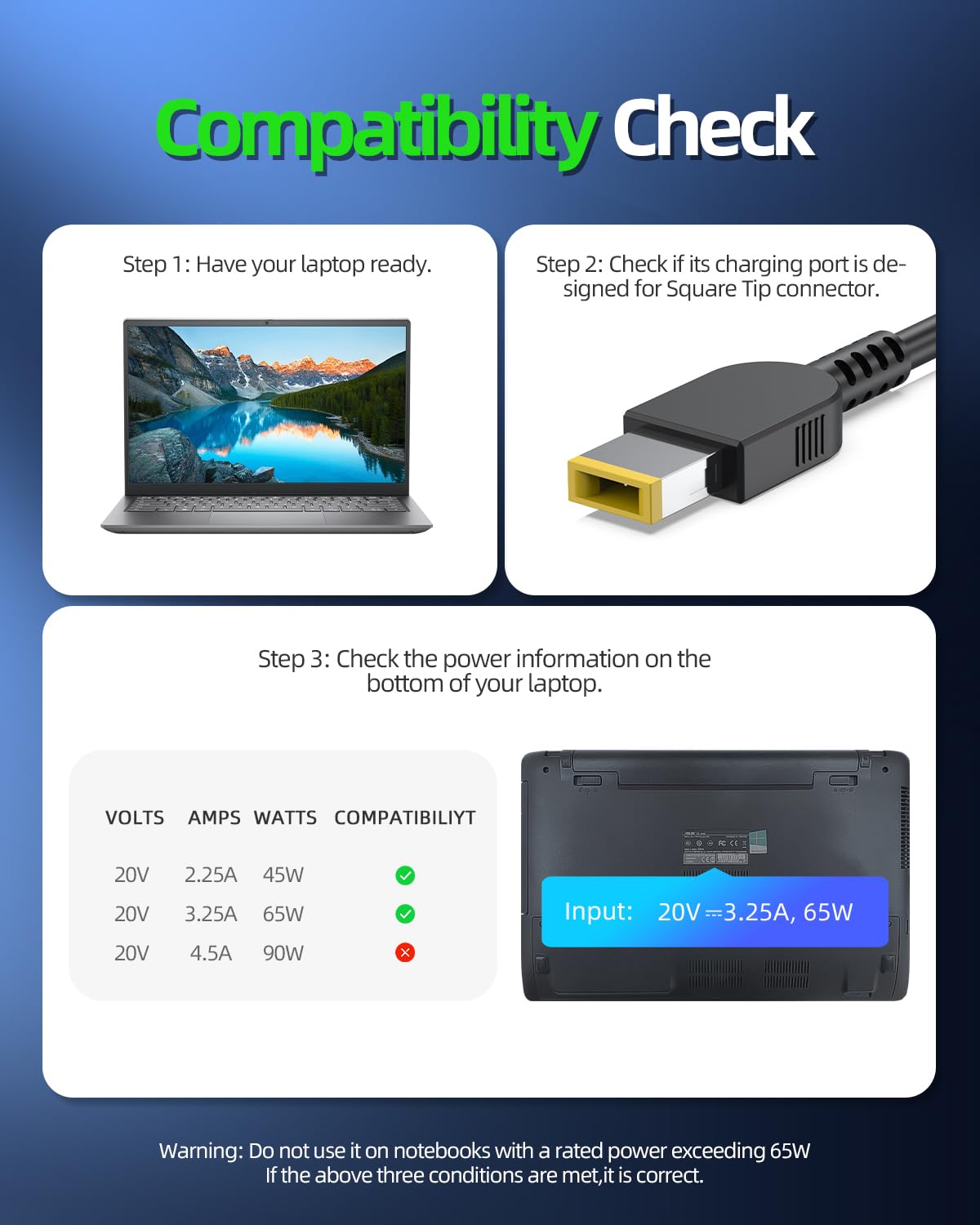 65W 45W Adlx65Ncc3A Adlx45Dlc2A Adlx45Ncc3A Adlx65Nlc3A Adlx65Ncc2A Adlx45Ndc3A Adlx45Ncc2A Adlx45Dlc3A Adlx65Ycc3A Adlx45Nlc3A Adlx65Ylc3A Adlx65Sdc2A Charger Fit For Lenovo Thinkpad Laptop, Slim Tip