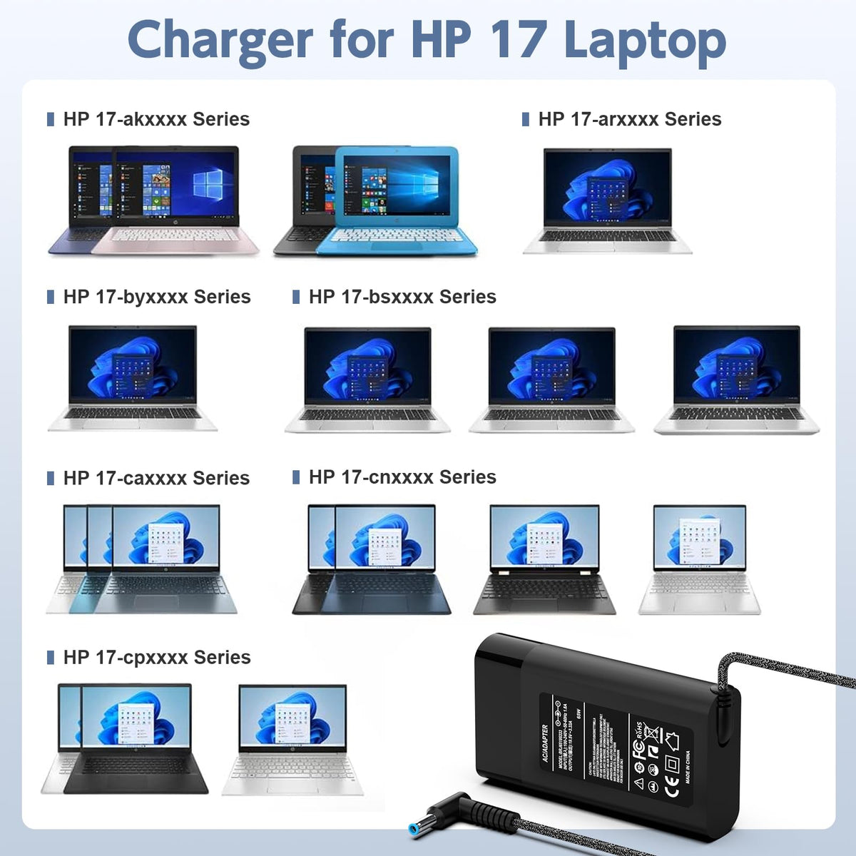 65W 45W Charger For Hp 17 Laptop; 17 By, 17 Bs, Hp 17 Ak, 17 Ar, 17 Ca, 17 Cp, 17 Cn, 17 X0, 17 X1: 17 Ak013Dx, 17 By1053Dx, 17 By0021Dx, 17 Ca0020Nr, 17 Ar050Wm Power Supply Cord (Blue Tip)