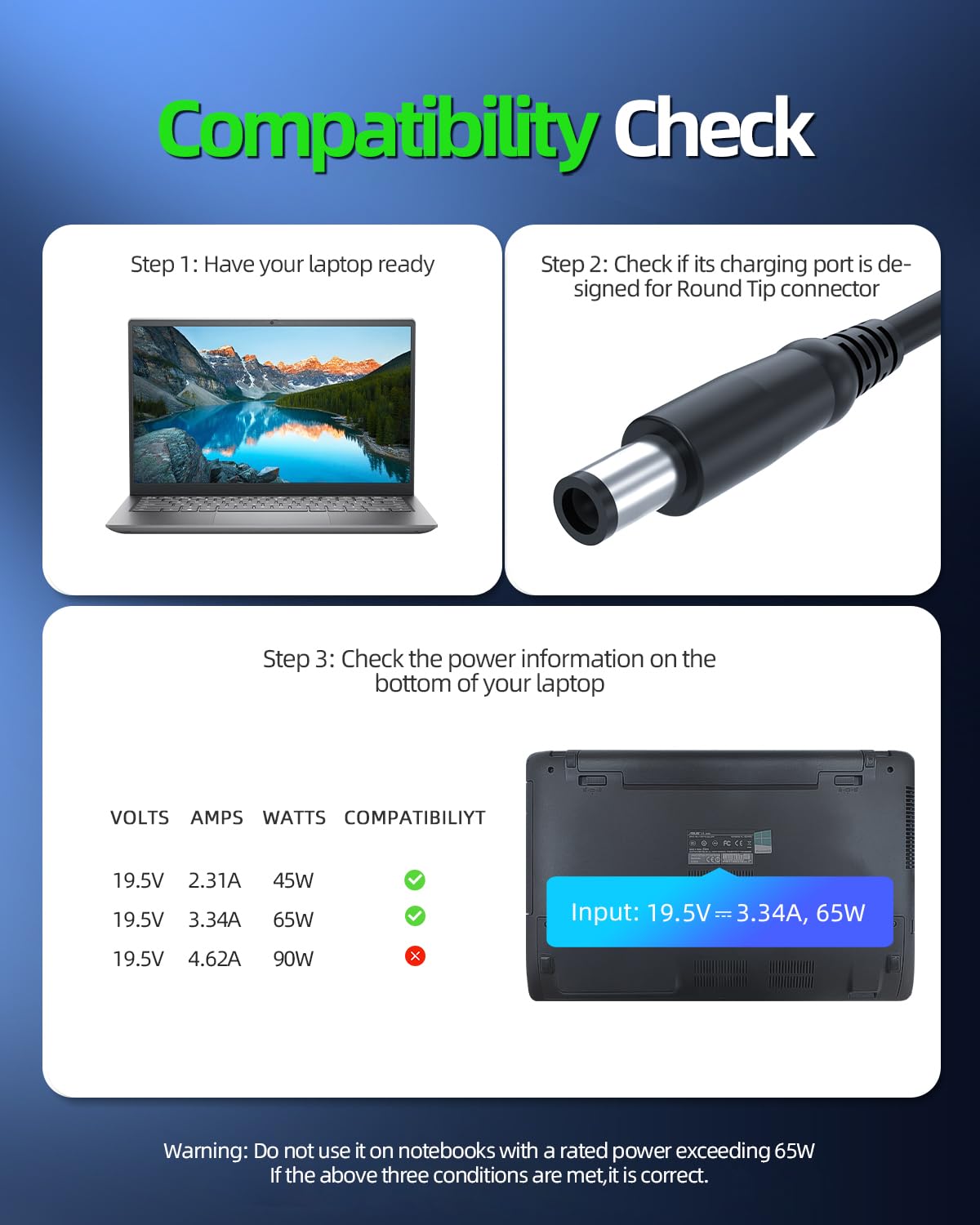 65W Ac Charger Fit For Dell Latitude 5510 5410 5310 5310 2 In 1 P80F002 P97G002 P97G001 P96G003 P98G007 Laptop Power Adapter Supply Cord (Safety Certified By Ul)