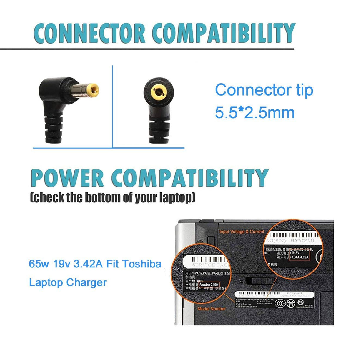 65W Laptop Adapter Power Charger For Toshiba Satellite C55 C655 C850 C50 L755 C855 L655 L745 P50 C855D C55D S55;Portege Z30 Z930 Z830;Satellite Radius 11 14 15 Pa3917U 1Aca Power Supply Cord