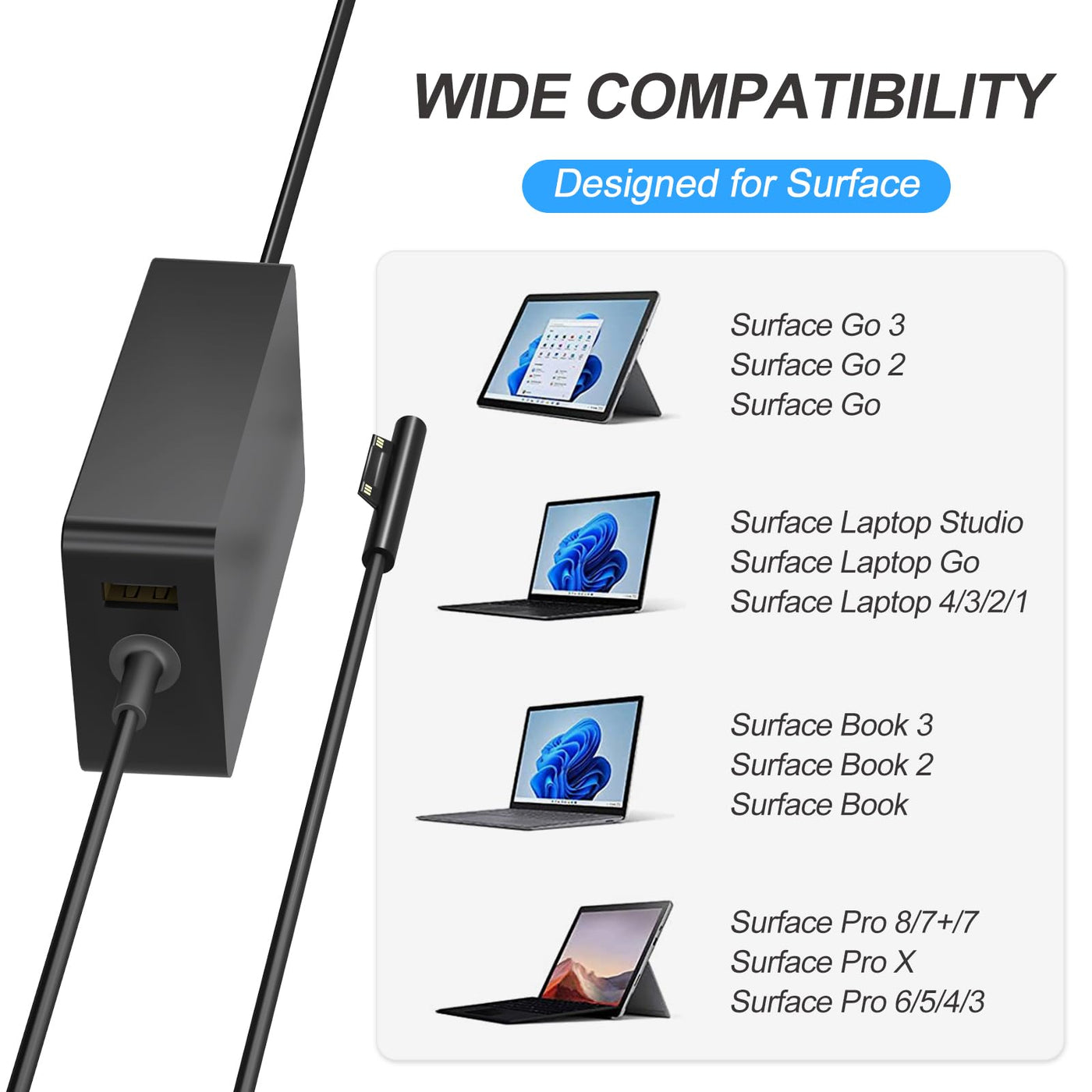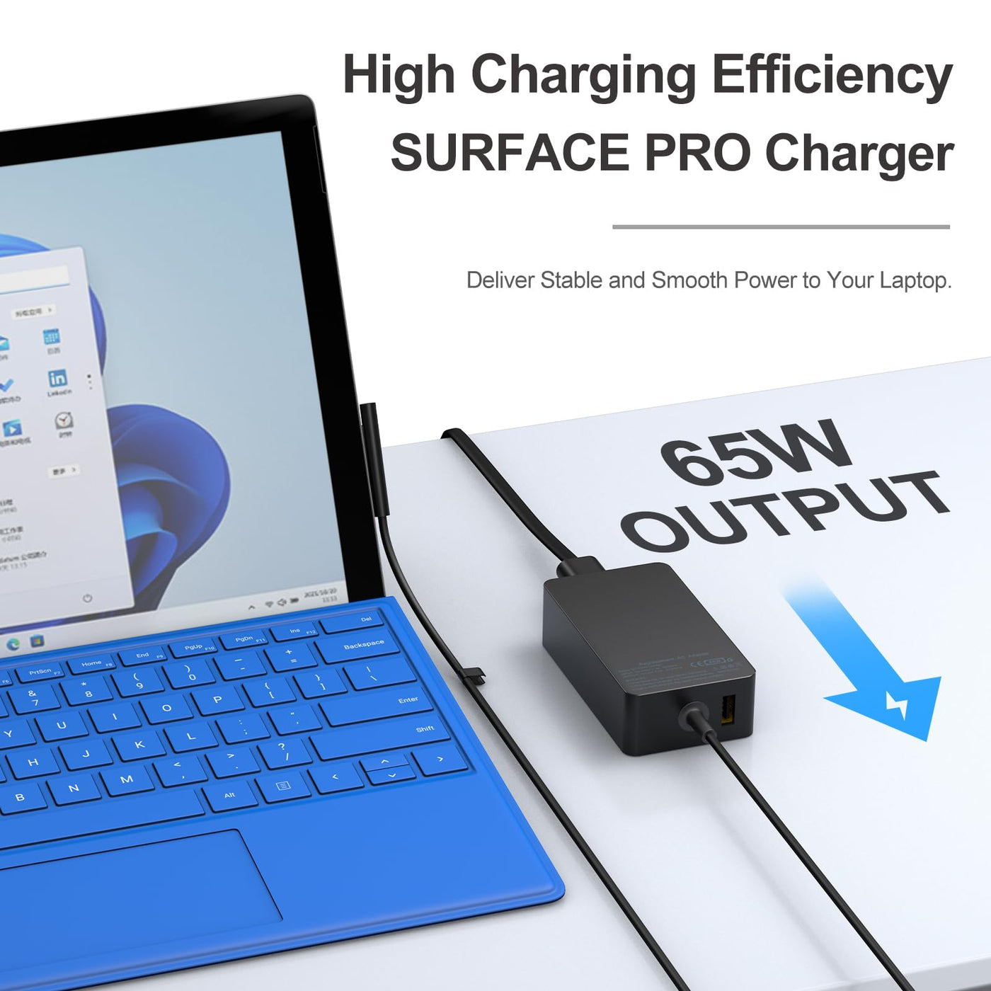 Andingker 65W Surface Pro Charger for Microsoft Surface Laptop 6-1, Surface Pro 10-3, Surface Book 3-1, Surface Go, 10FT Black Cable