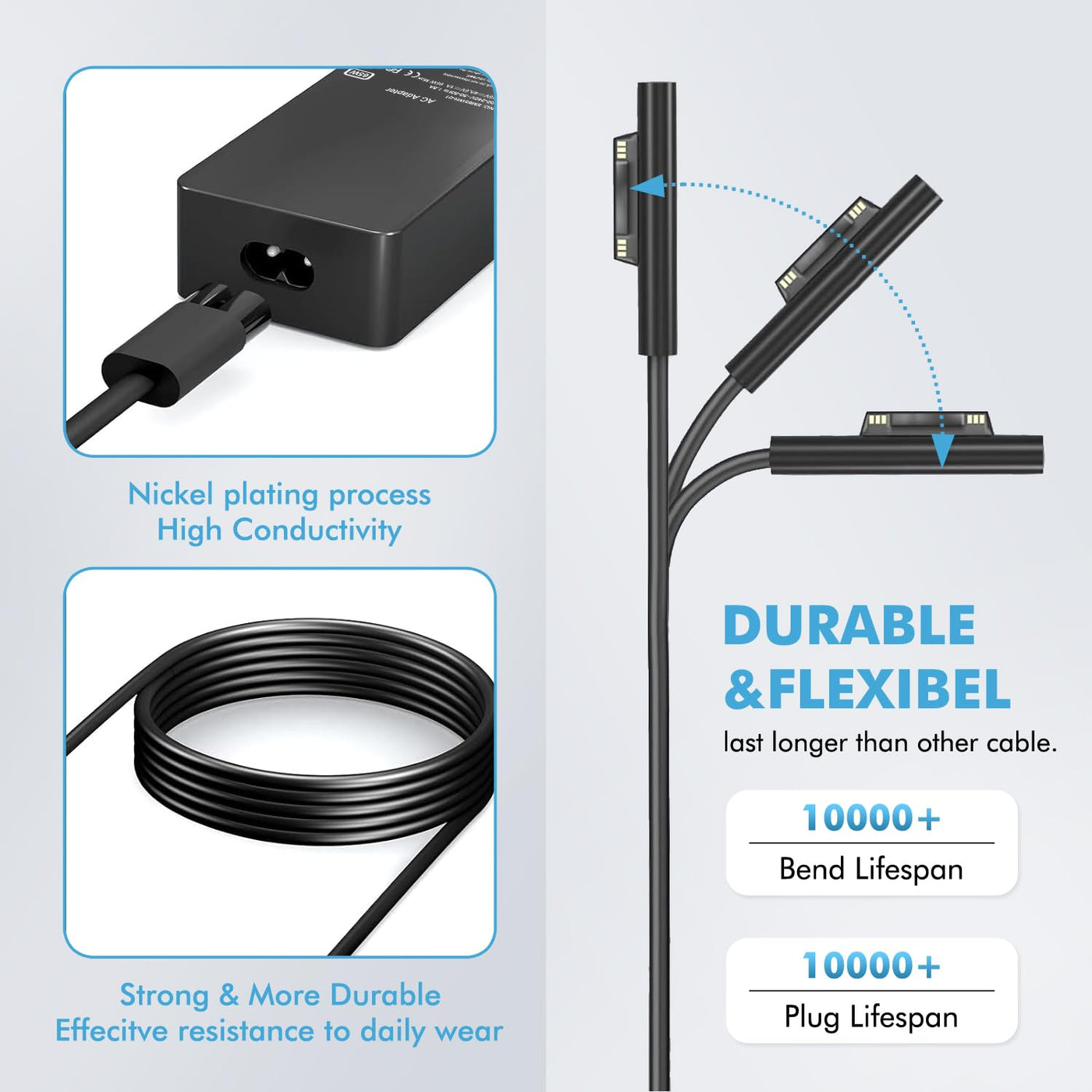 65W Surface Pro Laptop Charger Replacement For Microsoft Surface Pro 9 8 7 6 5 4 3 X Power Adapter,Surface Laptop 1 2 3,Compatible For Both Microsoft Surface Book Laptop/Tablet,Works With 65W&44W&36W