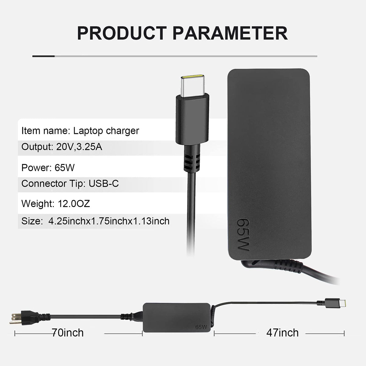 Q: What devices can I charge with this USB C laptop charger?A: This 45W USB C Laptop Charger is designed to charge various devices, including Lenovo ThinkPad laptops, Chromebook models, and other USB-C enabled devices. It delivers power through its Type-C connector, ensuring efficient charging for compatible laptops and tablets.