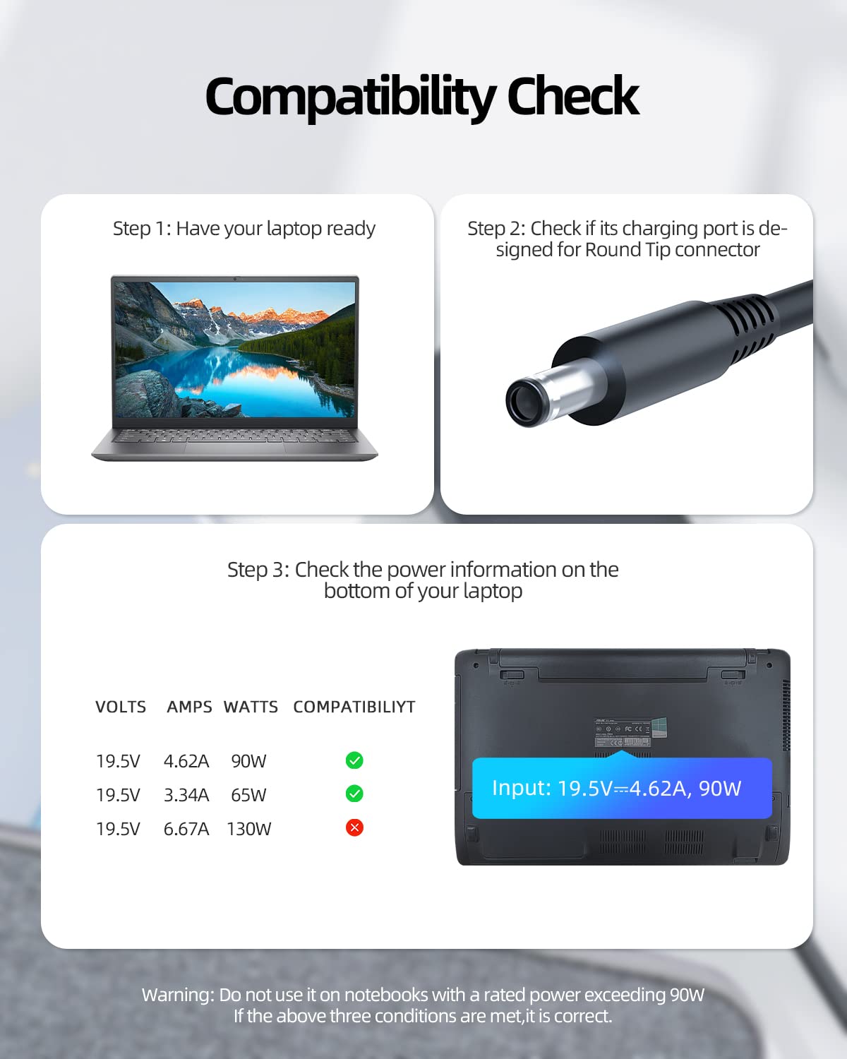 90W Ac Charger Replacement For Dell Inspiron 15 17 7500 7501 7590 7591 7790 5400 5401 5490 5491 Aio 2 In 7700 1 7791 W24C002 Black Silver P84F P83F Laptop Power Adapter Supply Cord