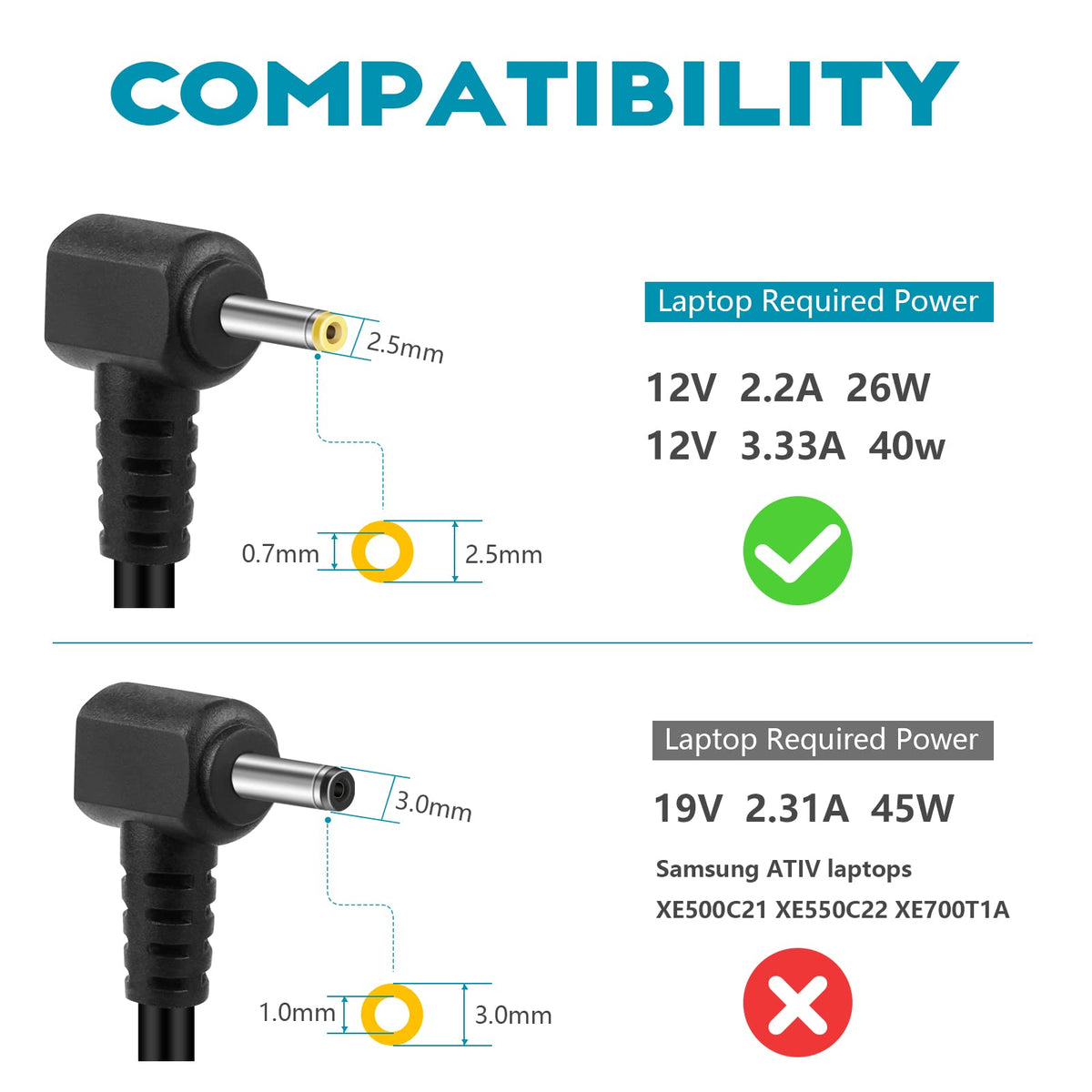 Ac Dc Adapter For Samsung Chromebook 3/2 / 1 11.6' Series Chromebook Xe303C12, Xe303C12 A01, Xe500C12 503C Xe503C12 Xe503C32 Xe500C13 Aa Pa3N40W Ad 4012Nhf A12 040N1A Google Chrome Os Charger