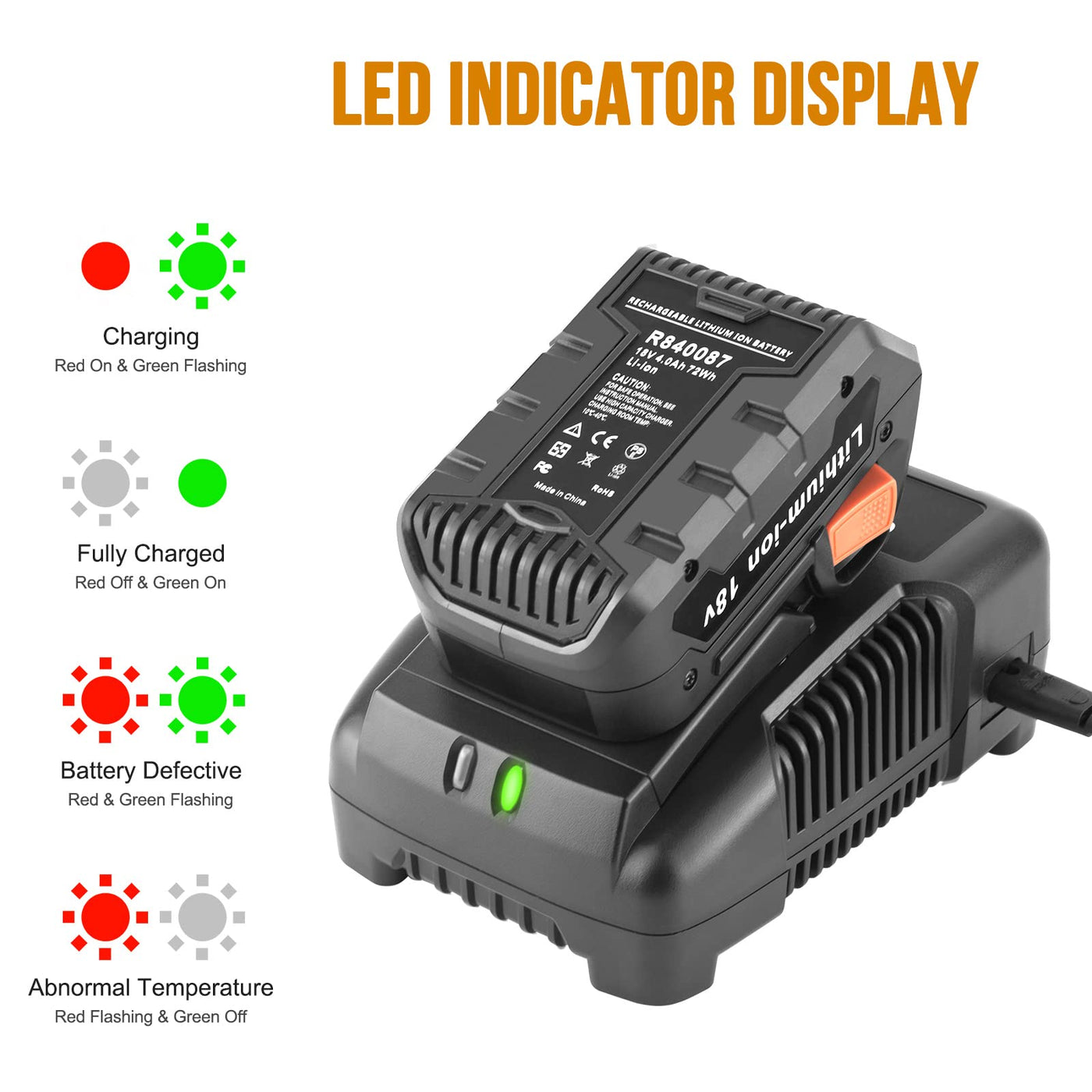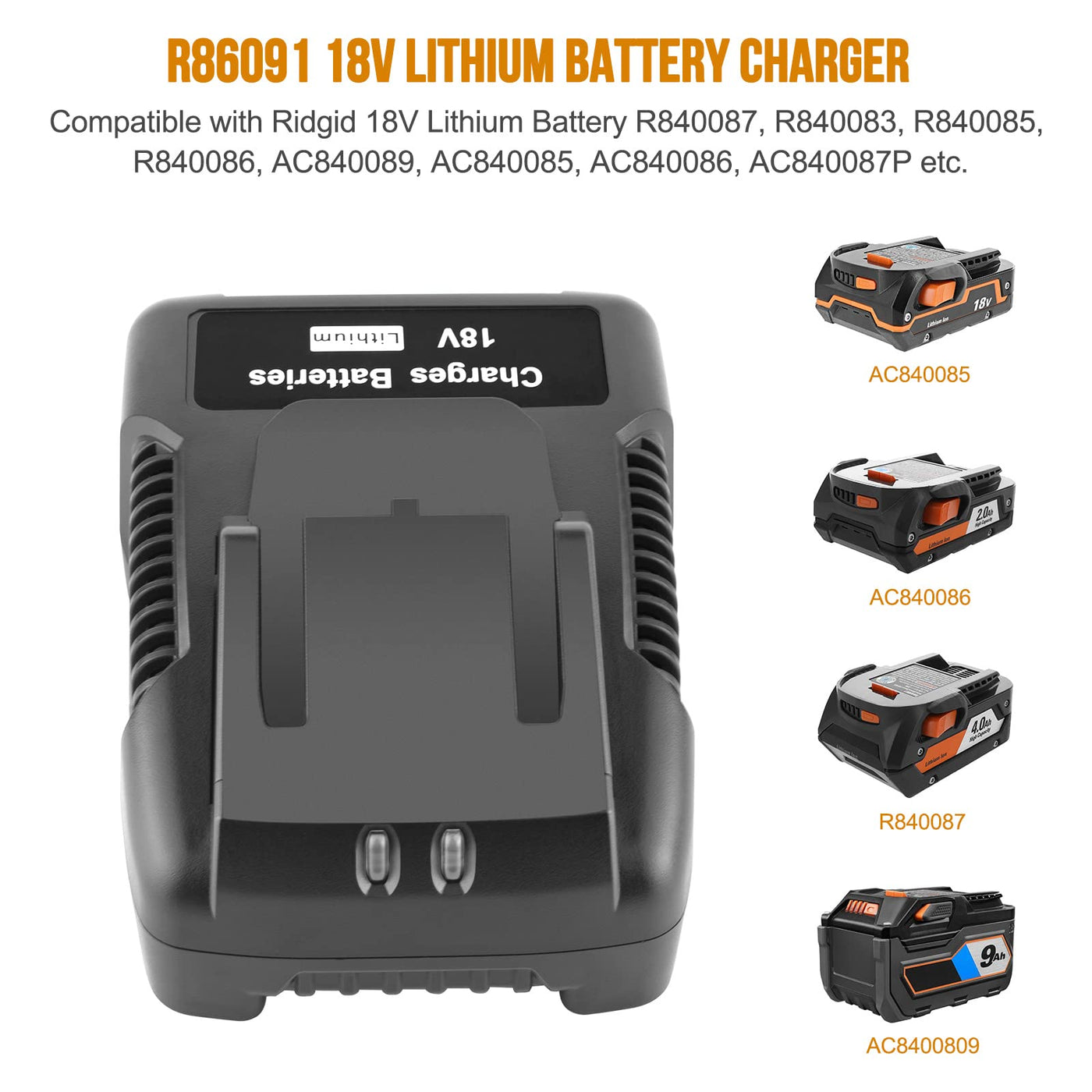 Advtronics R86092 R86091 18V Battery Charger Compatible With Ridgid 18V Lithium Ion Batteries R840083 R840085 R840086 R840087 R840089 Ac840085 Specification: Input: 120V, 50/60Hz, 42W Output: 18V 2.0A Fit For: Ridgid 18V Lithium Ion Battery Fit Battery Model: For Ridgid 18V Lithium-Ion Batteries R840087, R840083, R840085, R840086, Ac840089, Ac840085, Ac840086, Ac840087P And More Replace Charger: Replacement For Ridgid 18V Charger R86092 R86091 Ac840094 R840095 Product Feature: 100% Battery Compatibility And 100% Charger Replacement. 2.0A Fast Charges Without Any Damage To Your Batteries. Excellent Heat Dissipation Extends Batteries Cycling Times. Ce Fcc Products For Safety. Package Included: 1 * R86091 Replacement Charger For Ridgid (Battery Not Included) 1 * User Manual