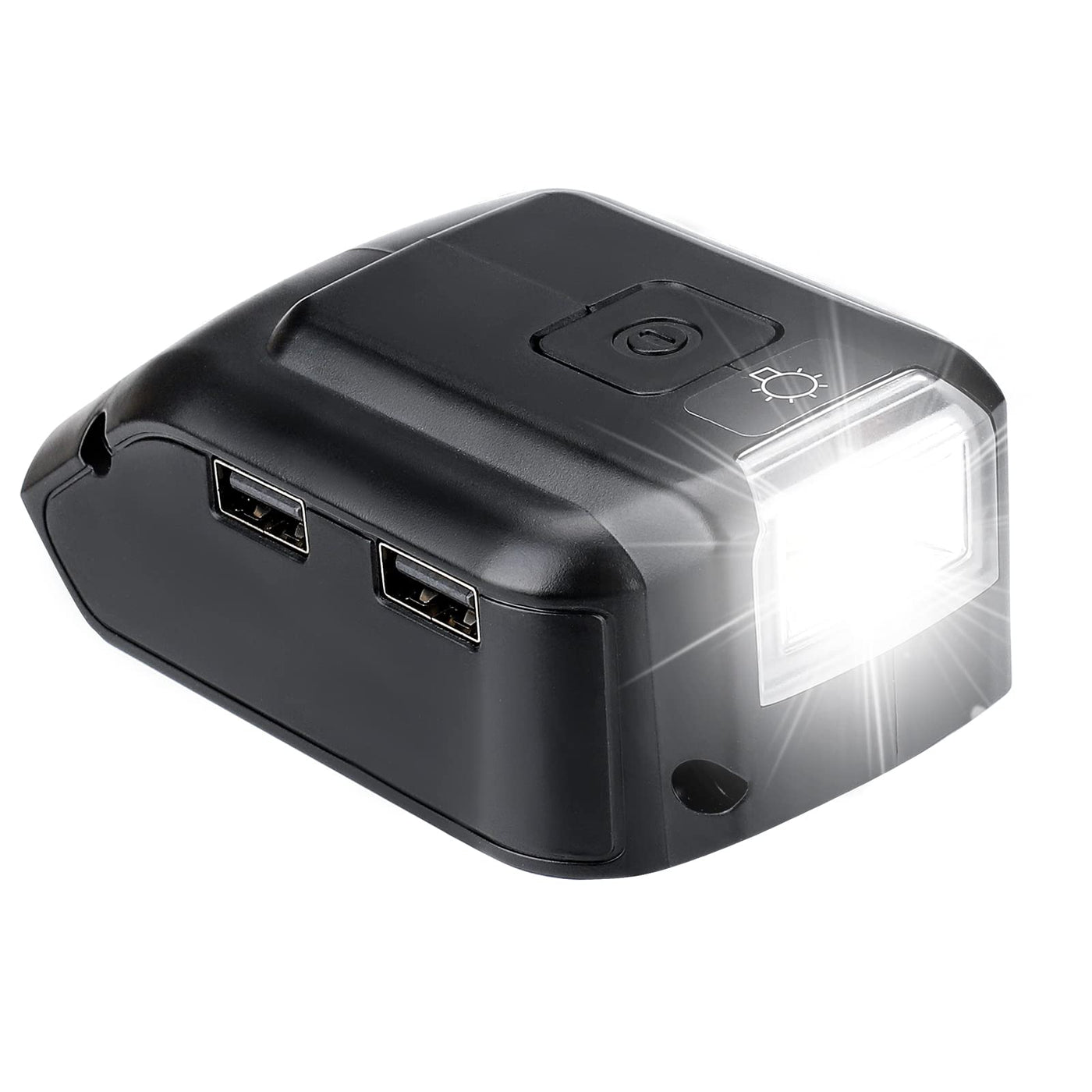 Battery Adapter For Dewalt 20V Battery Usb Phone Charger, Led Work Light With Dual Usb Charger And 12V Dc Port,Power Source Supp