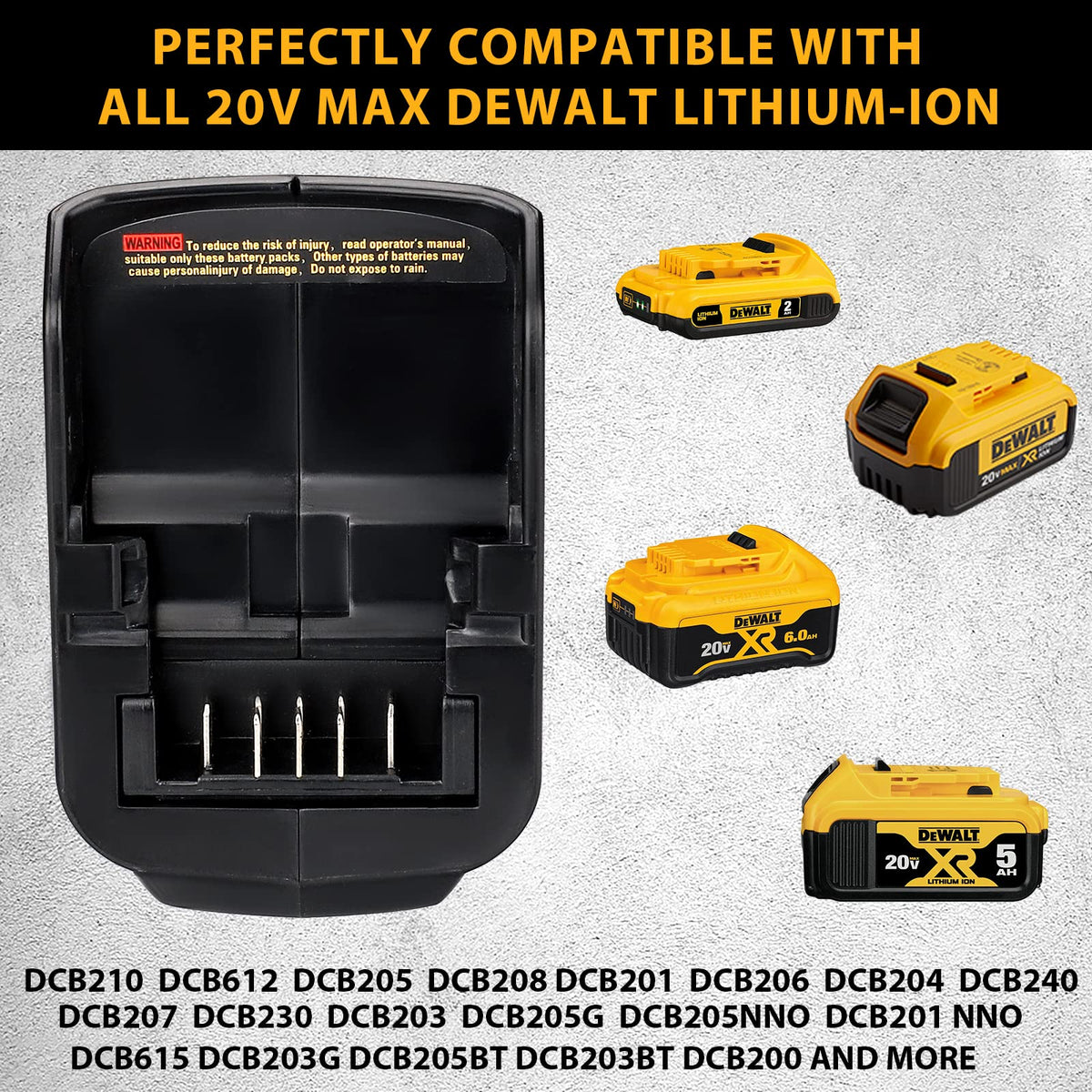 Q: Is the Battery Adapter compatible with all Dewalt 20V batteries?A: Yes, the Battery Adapter is perfectly compatible with various Dewalt 14.4V-20V Lithium-Ion batteries, including models such as DCB210, DCB612, DCB205, and many more.