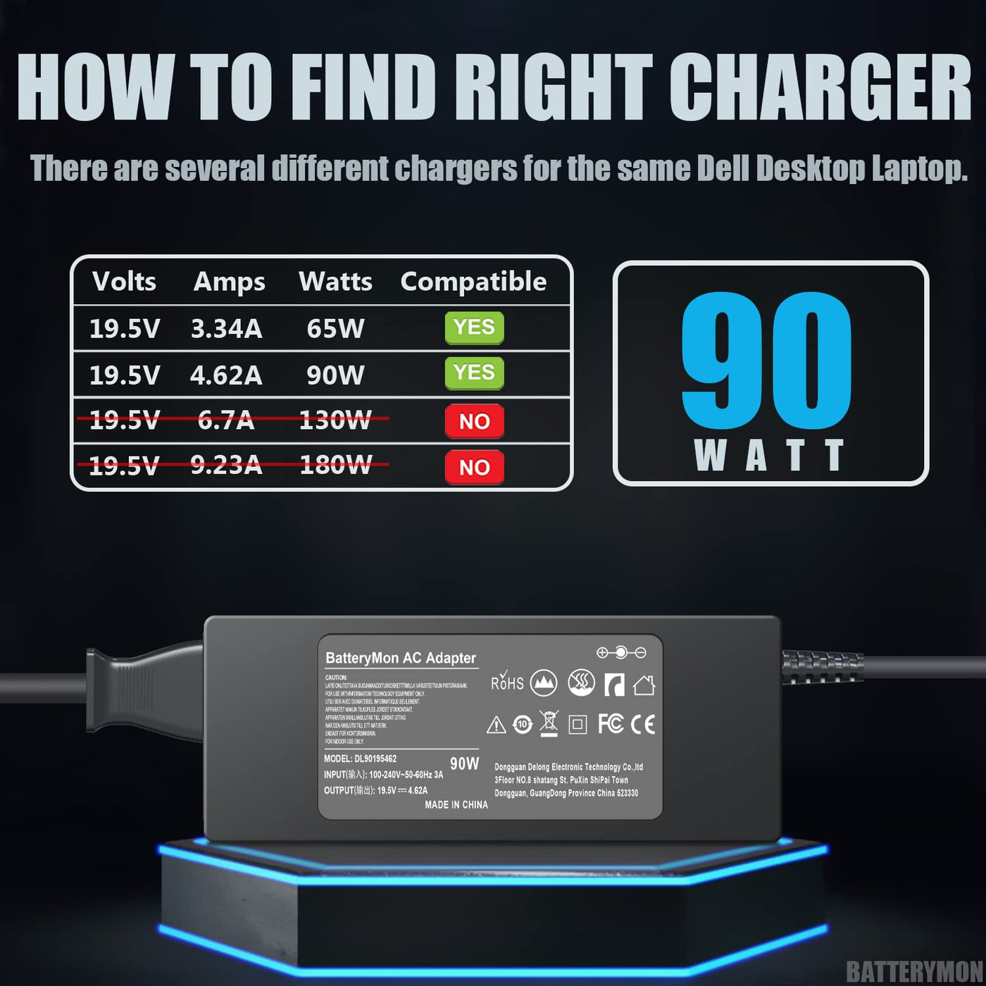Batterymon 90W Optiplex Charger For Dell Optiplex 3060 7070 7040 9020 9010 7090 7050 3090 3080S 3070 3050 3040 3046 3020 7060 Micro Desktop Computer Ac Adapter Fit 65W Dell Optiplex Power Supply Cord