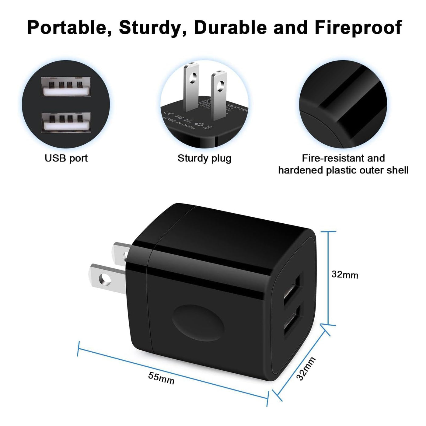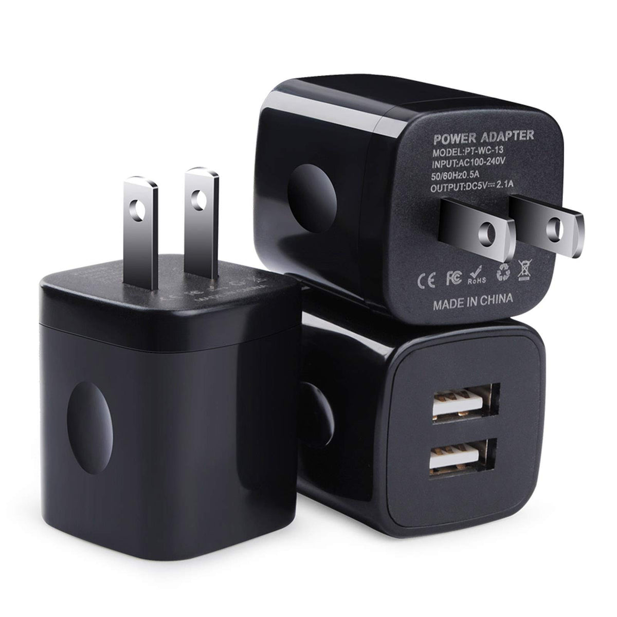 Black Usb Wall Adapter, Charging Block, 3Pack Dual Port 2.1A Fast Wall Charger Brick Base Cube Usb Plug Outlet Phone Charger Box