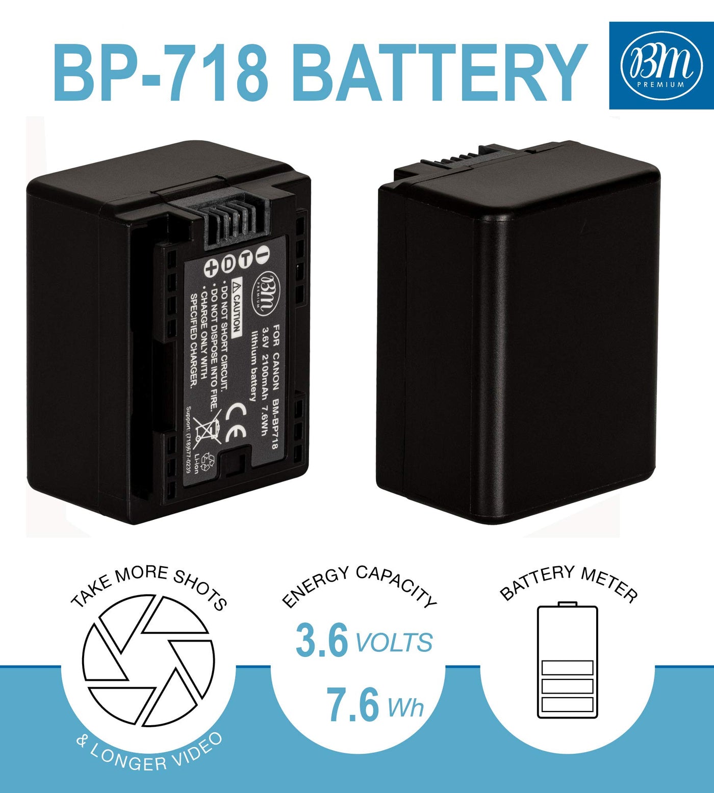 Bring your camcorder back to life with a new battery. Make sure you never miss another once-in-a-lifetime moment by having a new BP718 battery specifically designed for your Canon Vixia Camcorder. Our rechargeable batteries are engineered to meet or exceed OEM specifications and feature the latest battery technology, including advanced circuitry, voltage regulation, and thermal circuit protection. Our batteries include a one-year warranty.