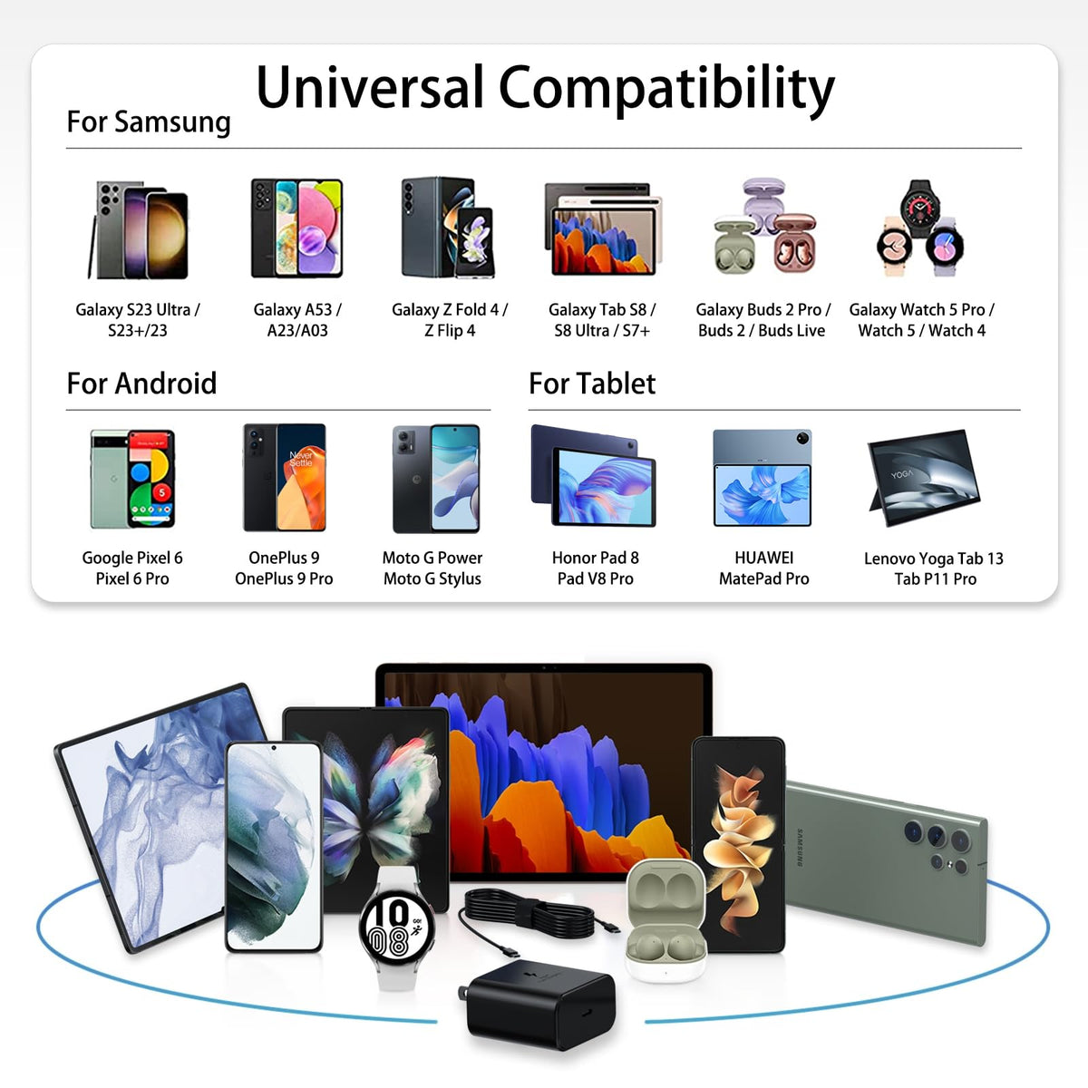 Samsung Super Fast Charger Usb Type C 45W Charging Pd Pps For Samsung Galaxy S22 Ultra Plus S20 Note 10 Tab S8 Ultra Plus S7 Fe S21 A53 A52 Z Fold Flip 3 4 5G, 4.9Ft