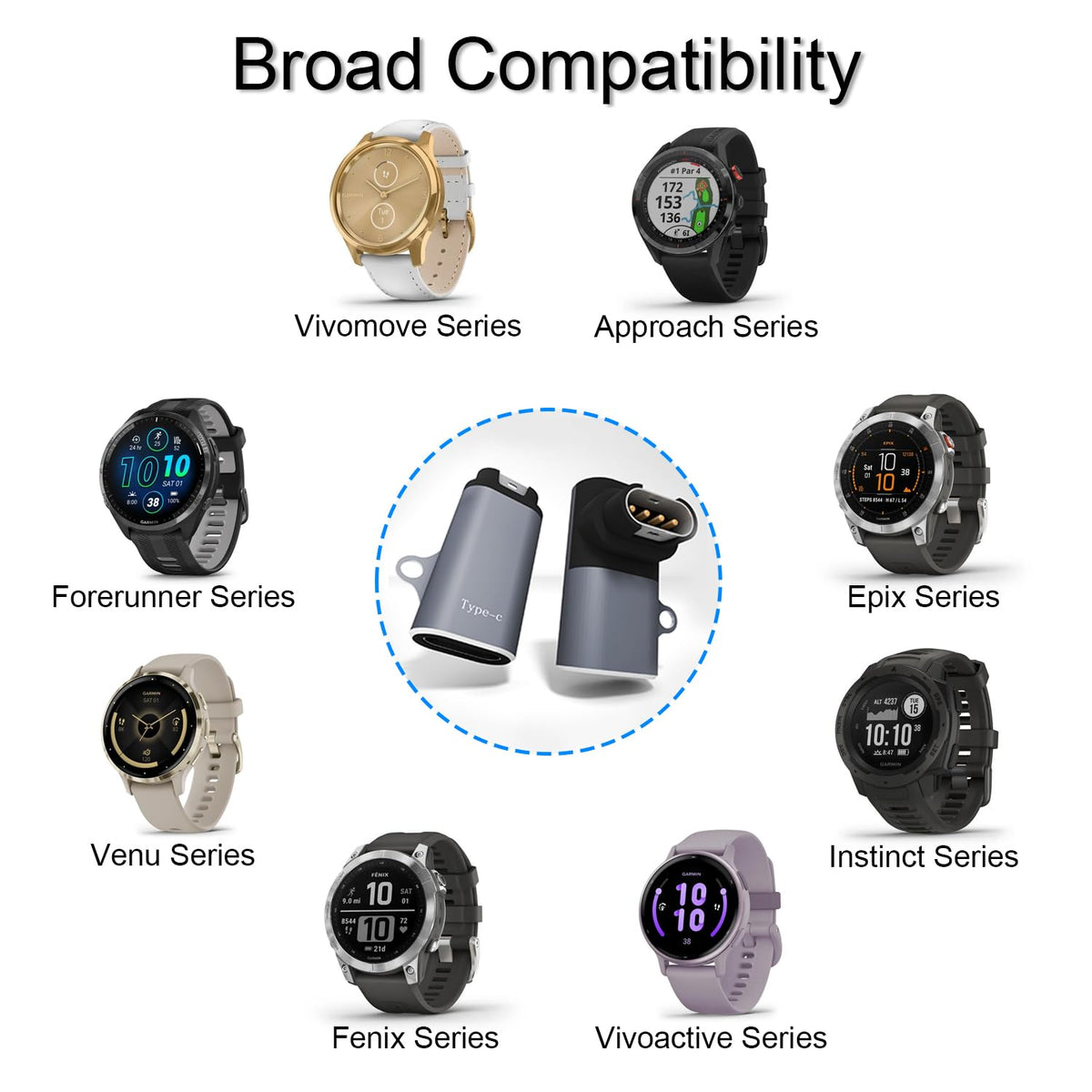 This Usb-C To Garmin Watch Charger Adapter Enables You To Charge Your Garmin Watch With Your Existing Usb-C Charging Cable, Eliminating The Need For An Extra One. Convenient And Practical, It'S Perfect For Daily And Travel Use. Attached Keychain: Portable And Secure, Allowing For Easy Carrying And Ensuring Charging Convenience At All Times. Aluminum Alloy Casing: Long-Lasting Durability, Ensuring Reliable Protection For Prolonged Use 90-Degree Angled Design: Suitable For Charging In Tight Spaces, Offering Greater Flexibility In Usage Wide Compatibility: Compatible With Garmin Instinct, Fenix 7/7X/7S, Vivoactive 5/4/4S,Forerunner 965/265/255/245/55/45,Venu 3S/2S/Sq,Epix Pro,Vivomove,Tactix,Swim 2 And More.