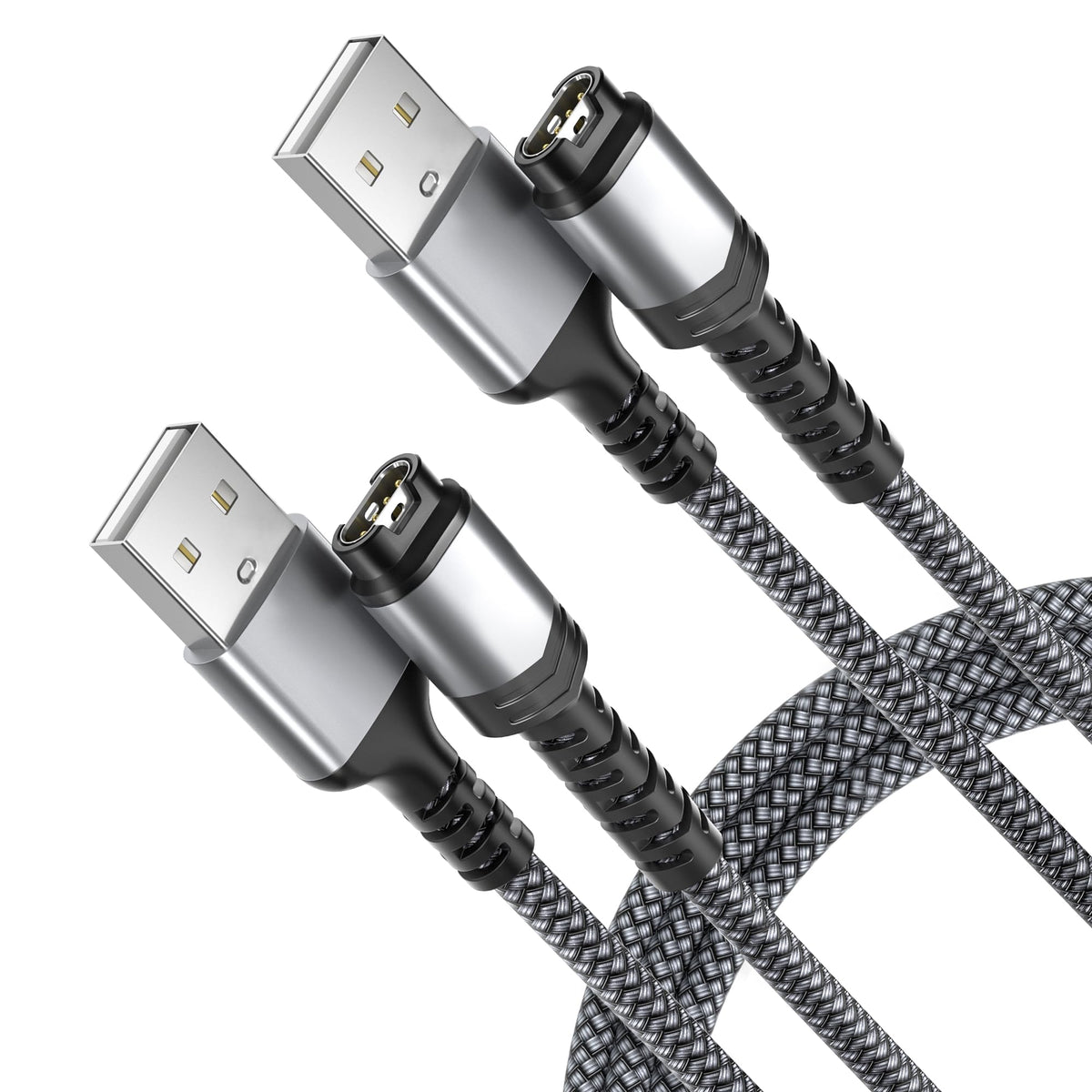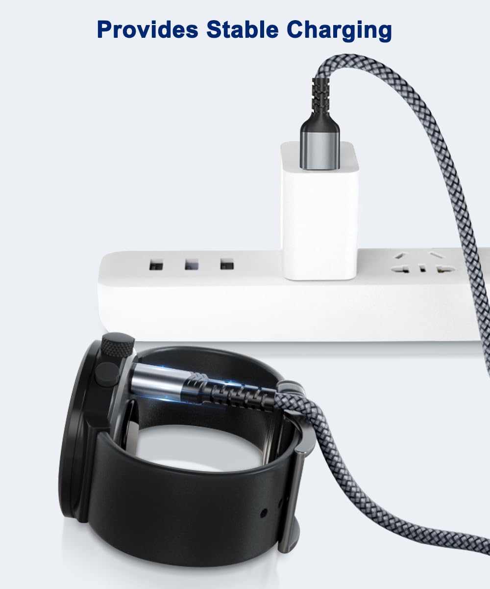Q: Is this charging cable more durable than the original Garmin cable?A: Yes, this charging cable features a double-braided nylon jacket and aluminum casing, making it significantly stronger and more durable than the original Garmin cable, designed to withstand daily wear and tear.