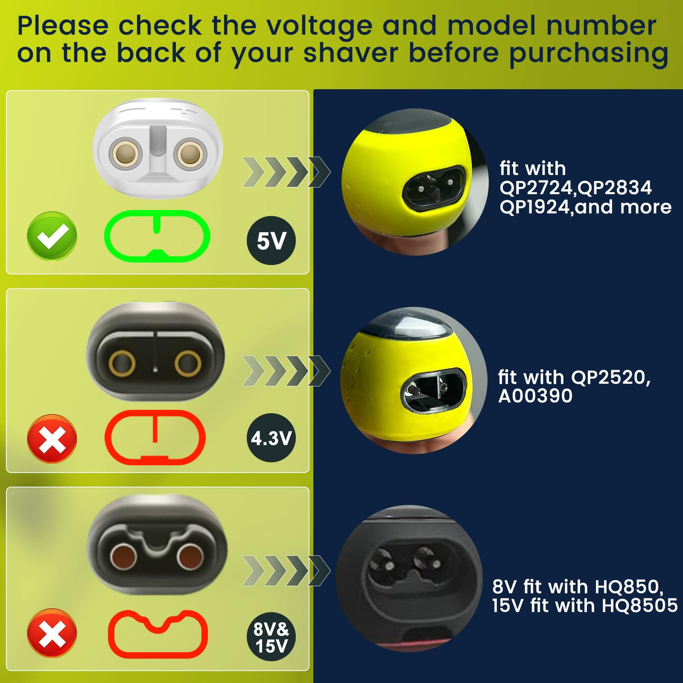 Q: Can I use this charger with other Philips models not listed?A: This charger is not compatible with Philips models such as QP2520, QP2630, HQ8505, HQ850, HQ840, QP6510, and QP6520. If your model is not listed, we recommend contacting customer service for confirmation before purchasing.