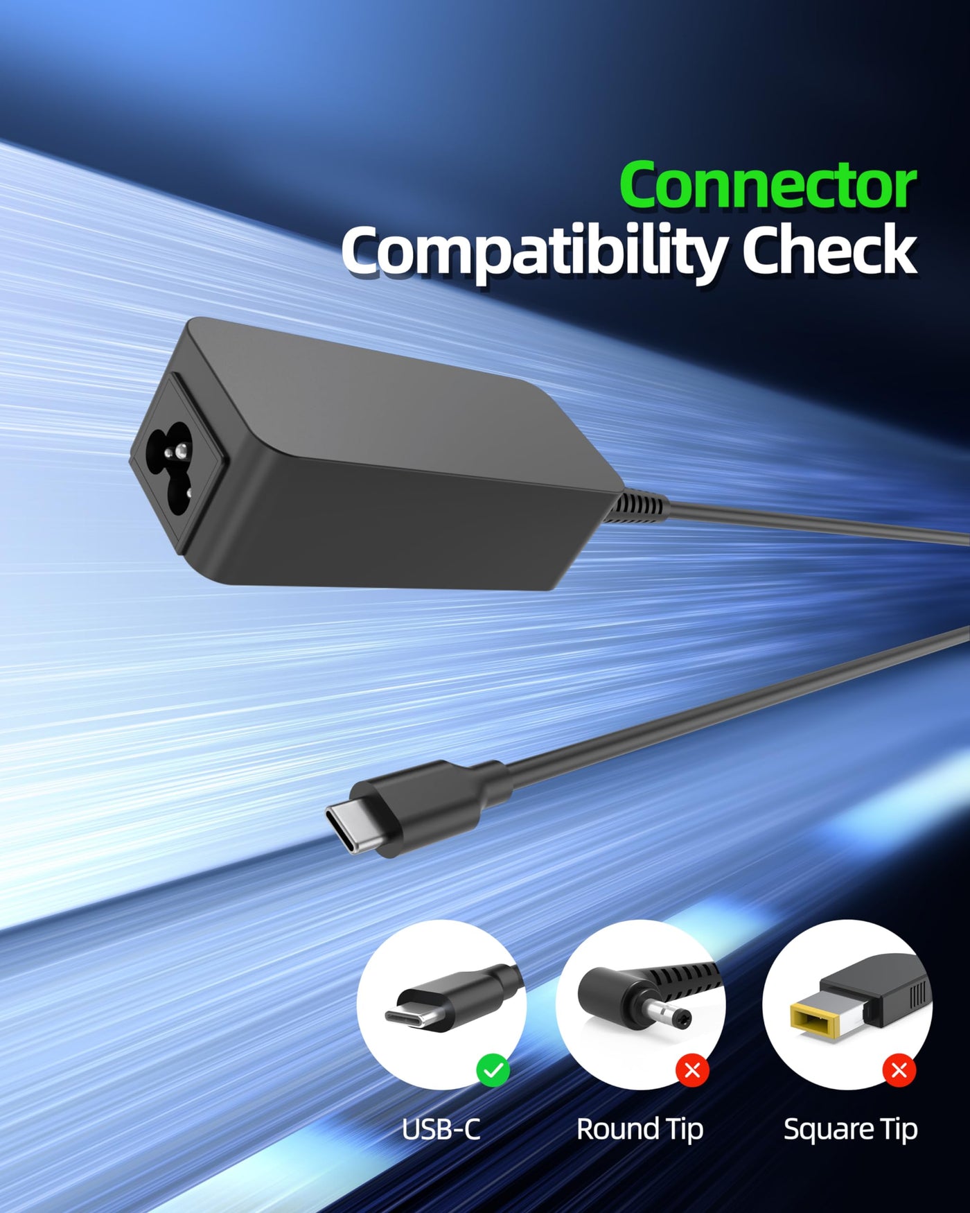 Charger Fit For Lenovo Chromebook 100E 300E 500E C330 S330 (Safety Certified By Ul) Usb C Power Connector 45W