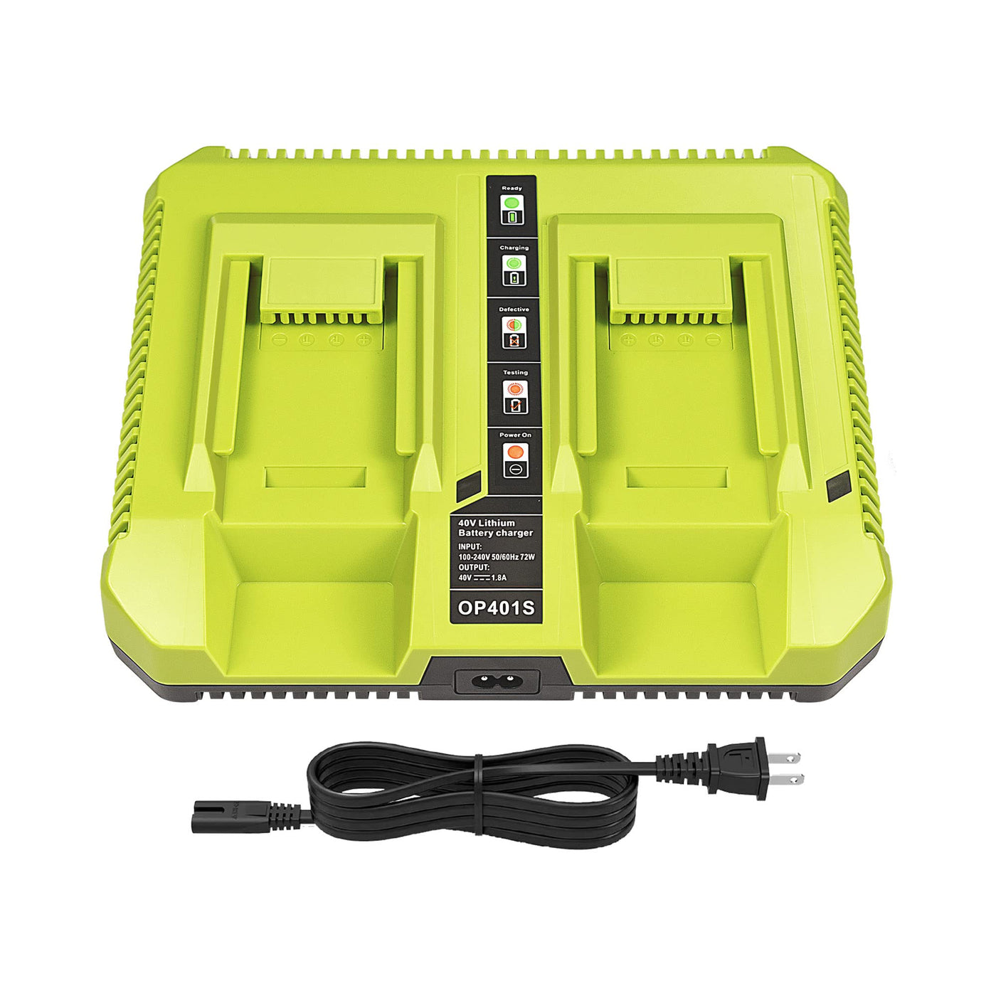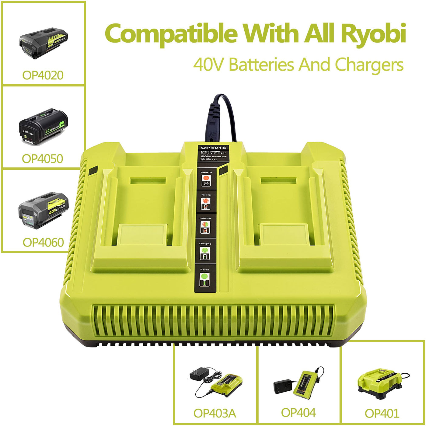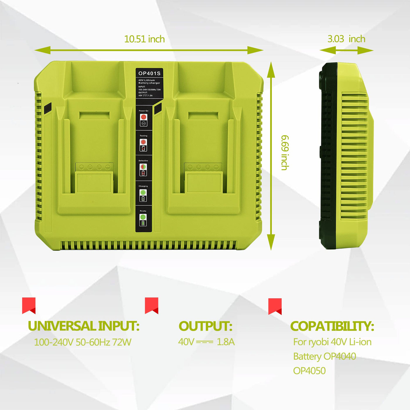 Chaunven 40V Charger For Ryobi, Op401 40 Volt Lithium Ion Battery Dual Charger For Op4015 Op4026 Op4030 Op4040 Op4050 Op4060 Bat