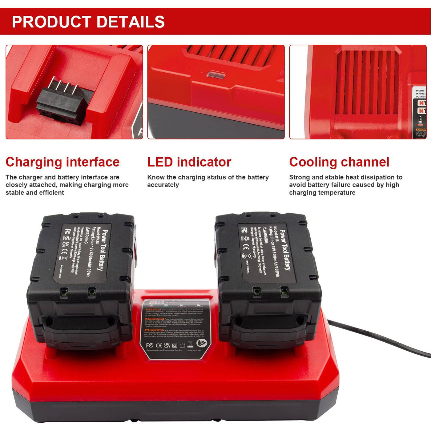 Dual Battery Charger Replace For M18 Milwaukee 6A Rapid Lithium Charger To Charge 14.4V 18V Xc Lithium Ion Battery 48 59 1890 48