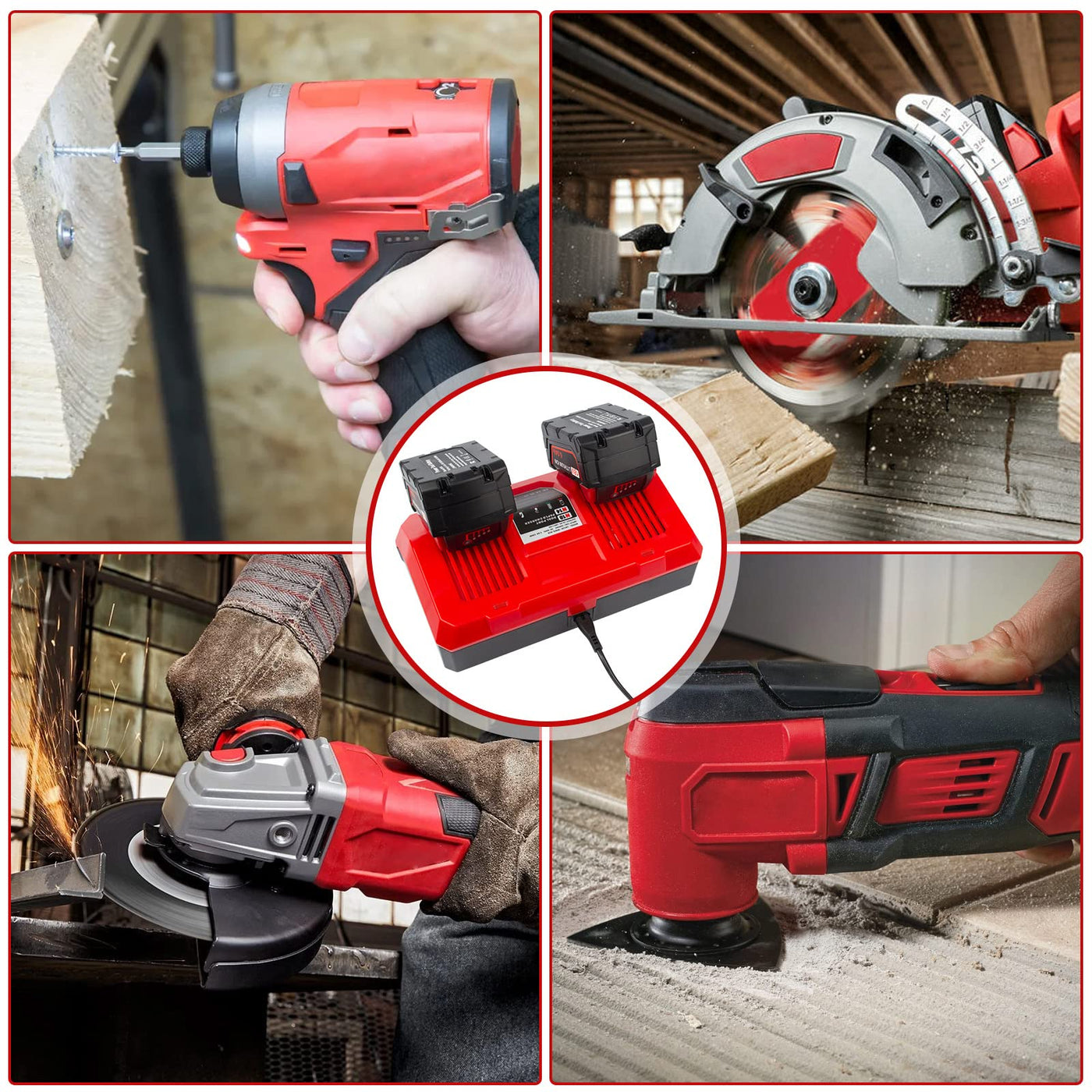 Q: Is this dual battery charger compatible with all Milwaukee M18 batteries?A: Yes, this dual battery charger is fully compatible with various Milwaukee M18 XC lithium-ion batteries, including models 48-11-1811, 48-11-1812, 48-11-1815, and more.