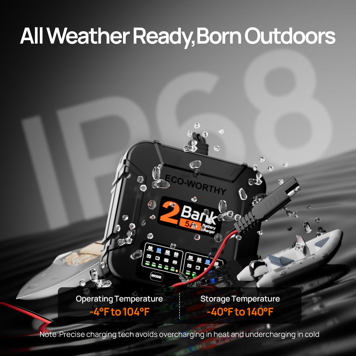 Eco-Worthy 2-Bank Marine Battery Charger 10A (5A/Bank), Ip68 Waterproof 12V Charger & Maintainer For Boat Rv Car, Lead-Acid Life