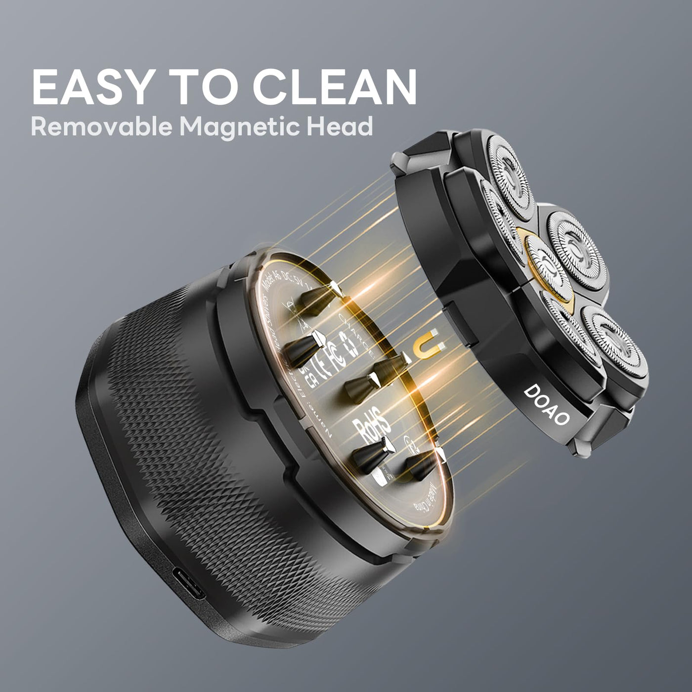 Q: What makes the DOAO Head Shaver ideal for bald men?A: The DOAO Head Shaver features a 6D flexible head that adapts to the contours of your scalp, providing a fast, smooth, and nick-free shave, making it perfect for bald men.