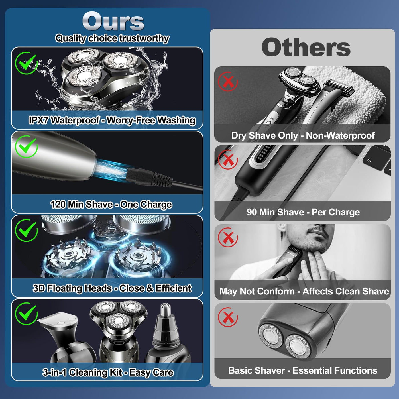 Electric Razor For Men, Men'S Electric Shavers Rotary Replacement Waterproof Rechargeable,Electric Shaver For Men Cordless Float