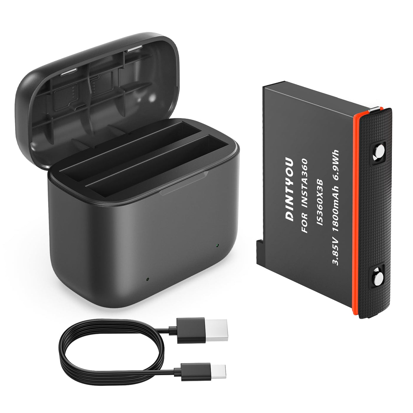 Fast Battery Charger Hub For Insta 360 X3 360 Camera The Charge Hub Can Charge Two Batteries Of The Insta360 X3 Camera At The Same Time Compatible With Cameras: Insta360 One X3 Camera Specifications: Battery Type: Li-Ion Polymer Battery 1800Mah Capacity: 1800Mah Limitedchargevoltage: 4.40V; Rated Power Energy:6.93Wh; Nominal Voltage:3.85V. Input: Dc 5V / 2A 10W Package Includes: 1*X3 Replacement Battery, 1*2-Channel Charger, 1* Type-C Charging Cable, 1*User Manual